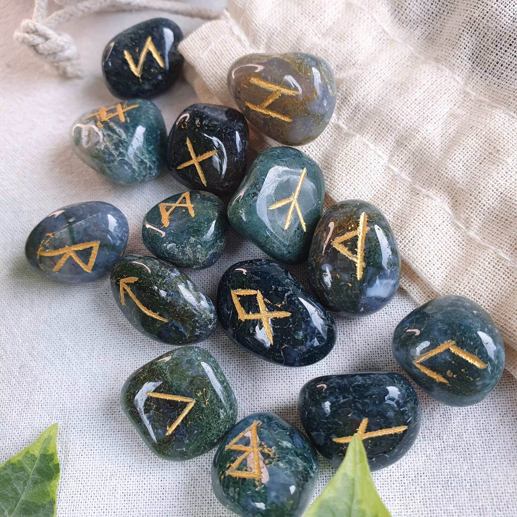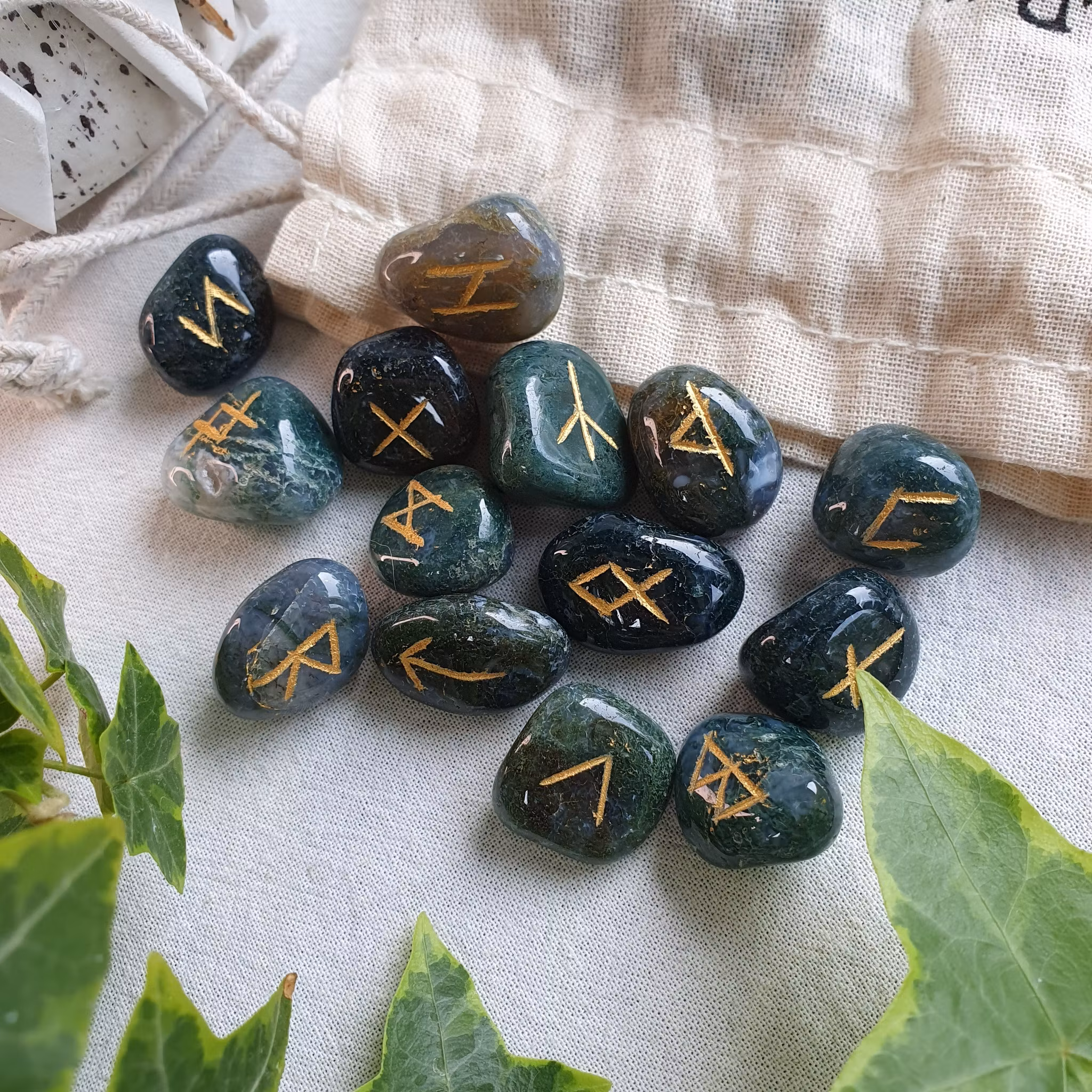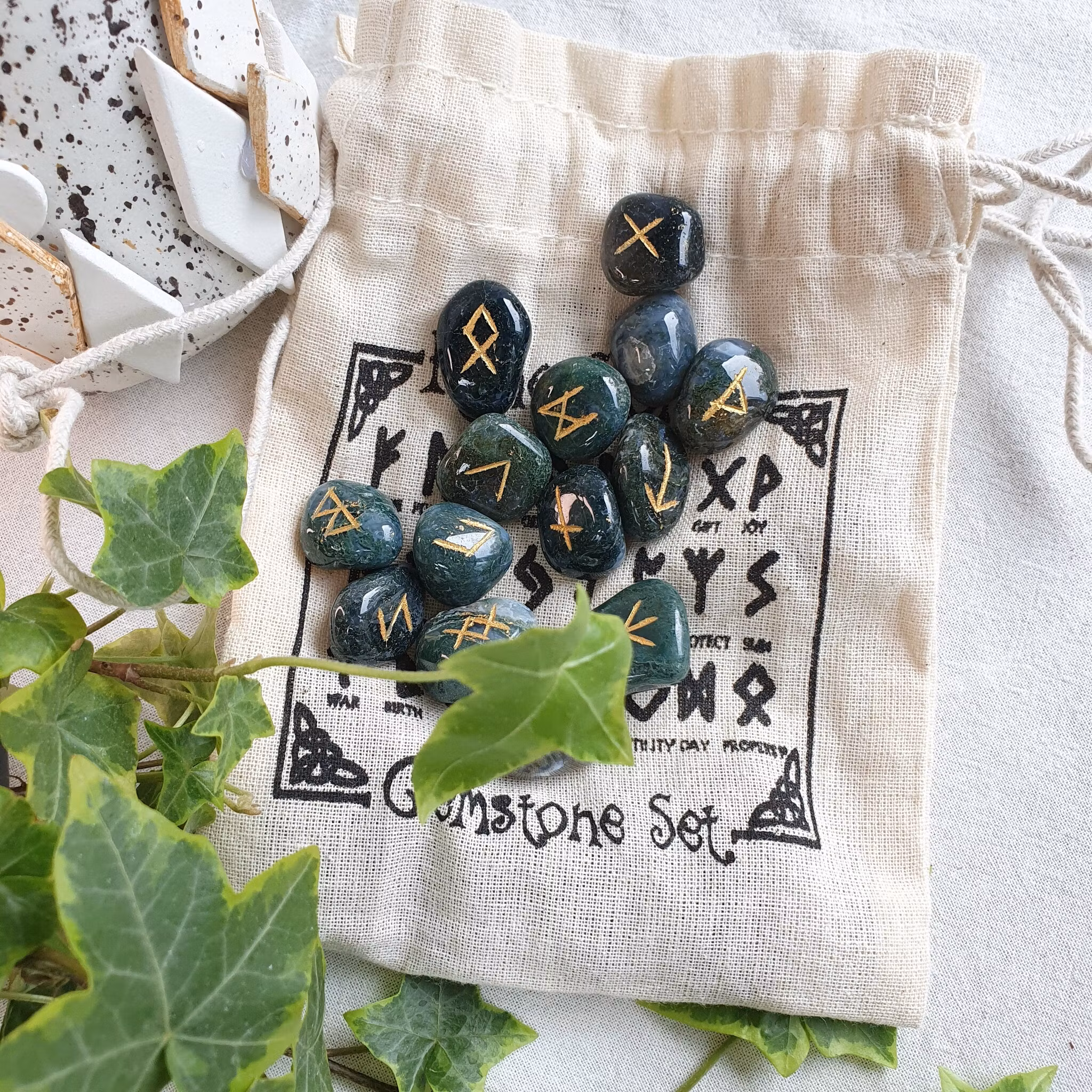 Magiska nordiska runor. 25 st varav 1 blank. Levereras i fin påse utav bomull.
