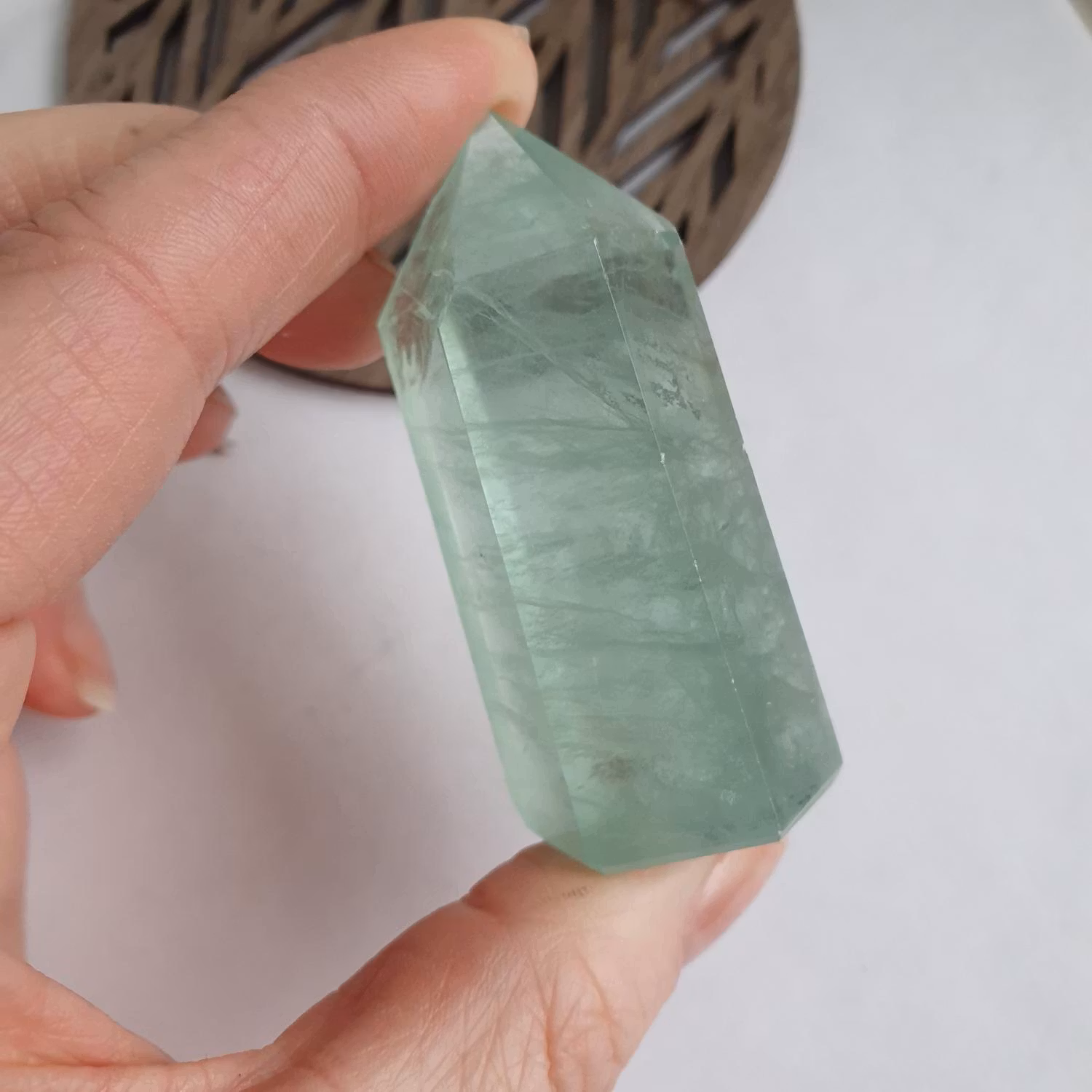 Fin Spets av Grön Fluorit från Kina. Spetsen på bilden är den du får.