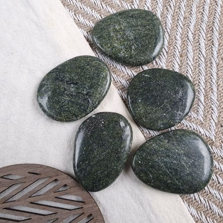 Dessa platta stenar används till fördel för till ex chakrabalansering och när du vill ha en sten med dig. Formen gör att den ligger bra i fickor, bhn och varför inte i plånboken. Vi väljer en fin sten åt dig.