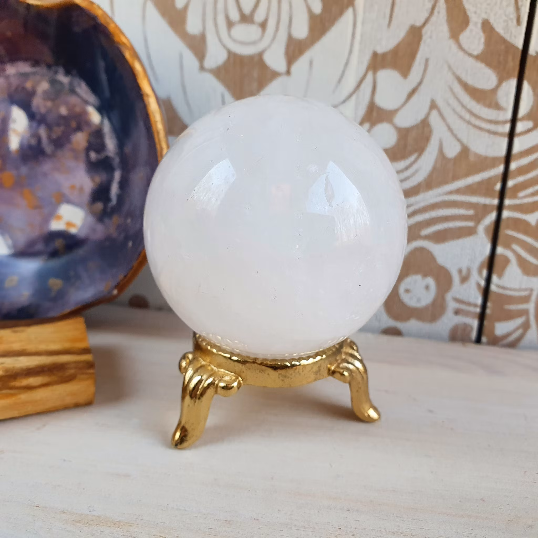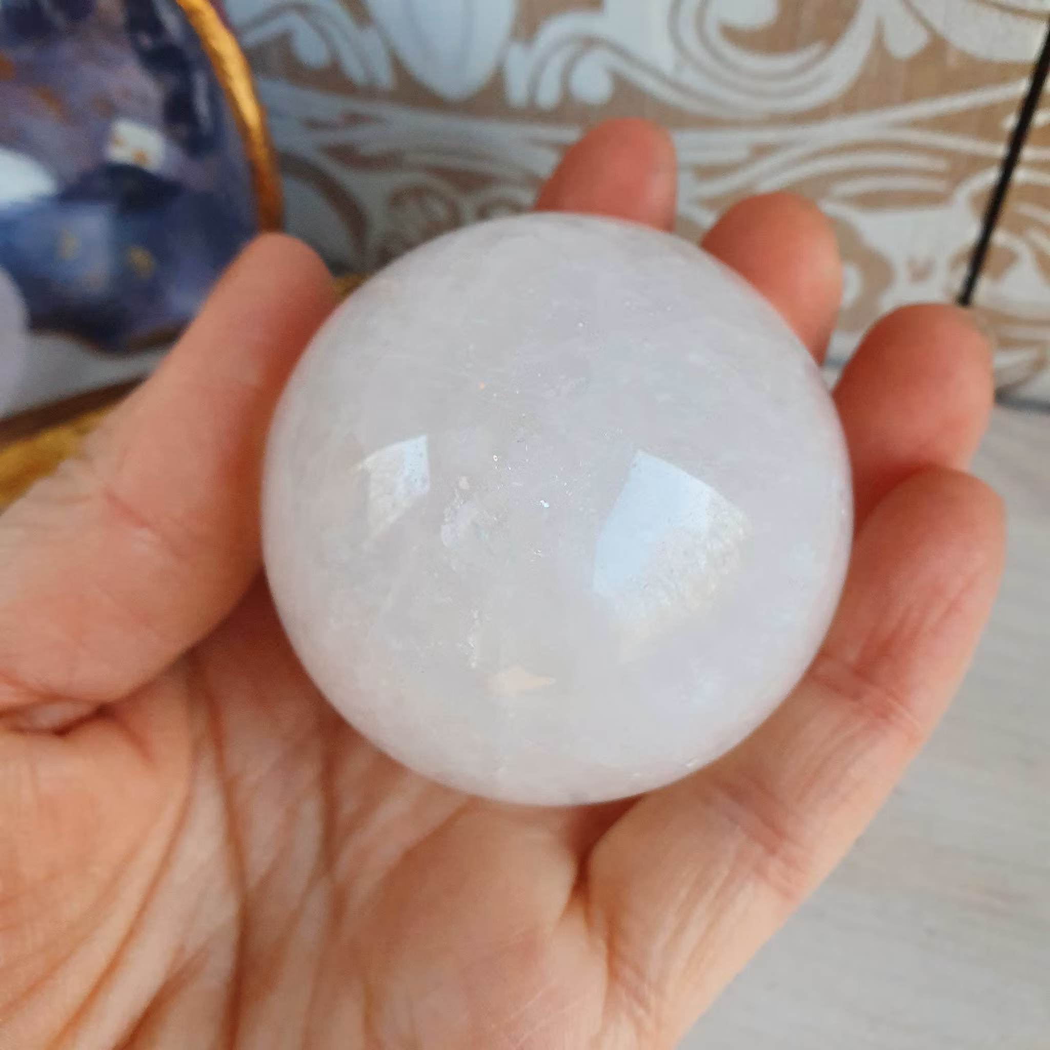 Vackert klot av Bergkristall i fin kvalitet. En liten ring följer med så att klotet står stadigt. Klotformen på Bergkristallen gör att energin fördelas jämt och ger en mjukare energi. Så underbar att arbeta med och att ha in sin inredning eller på sin kraftplats hemma. Klotet på bilden är det du köper.