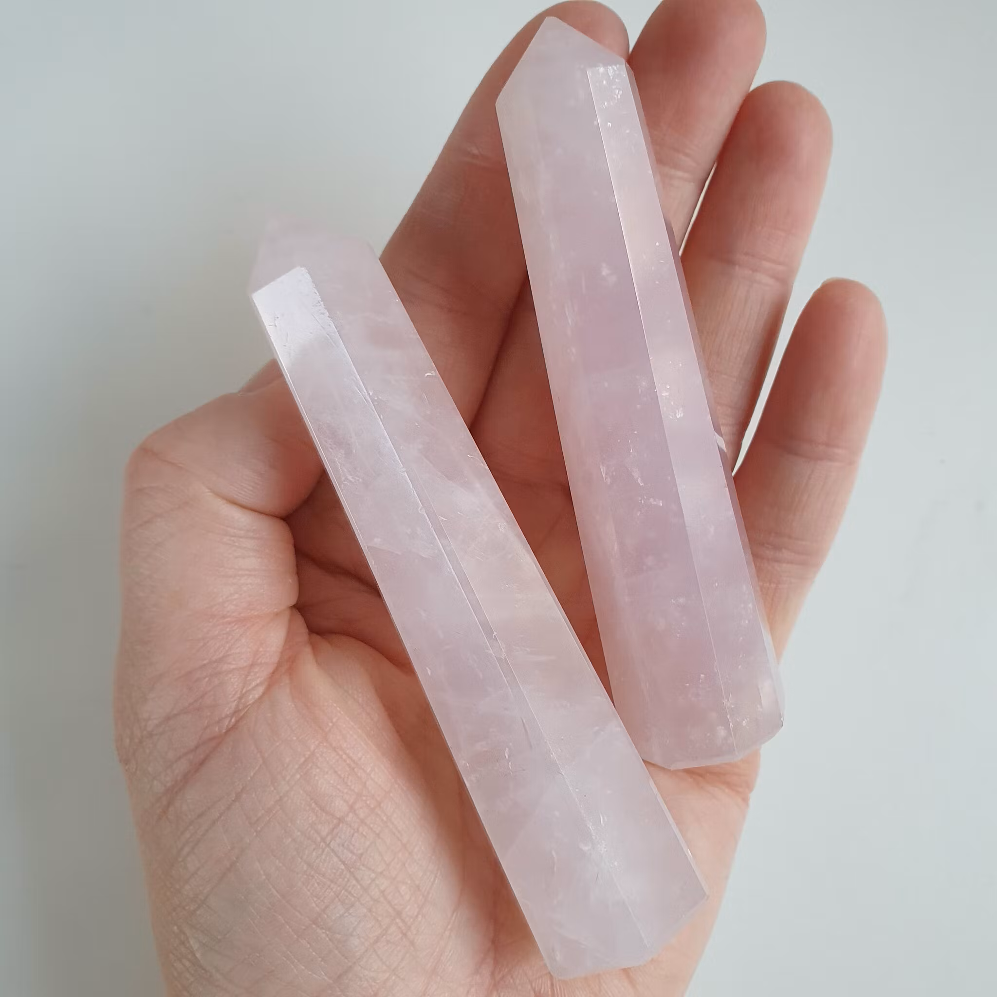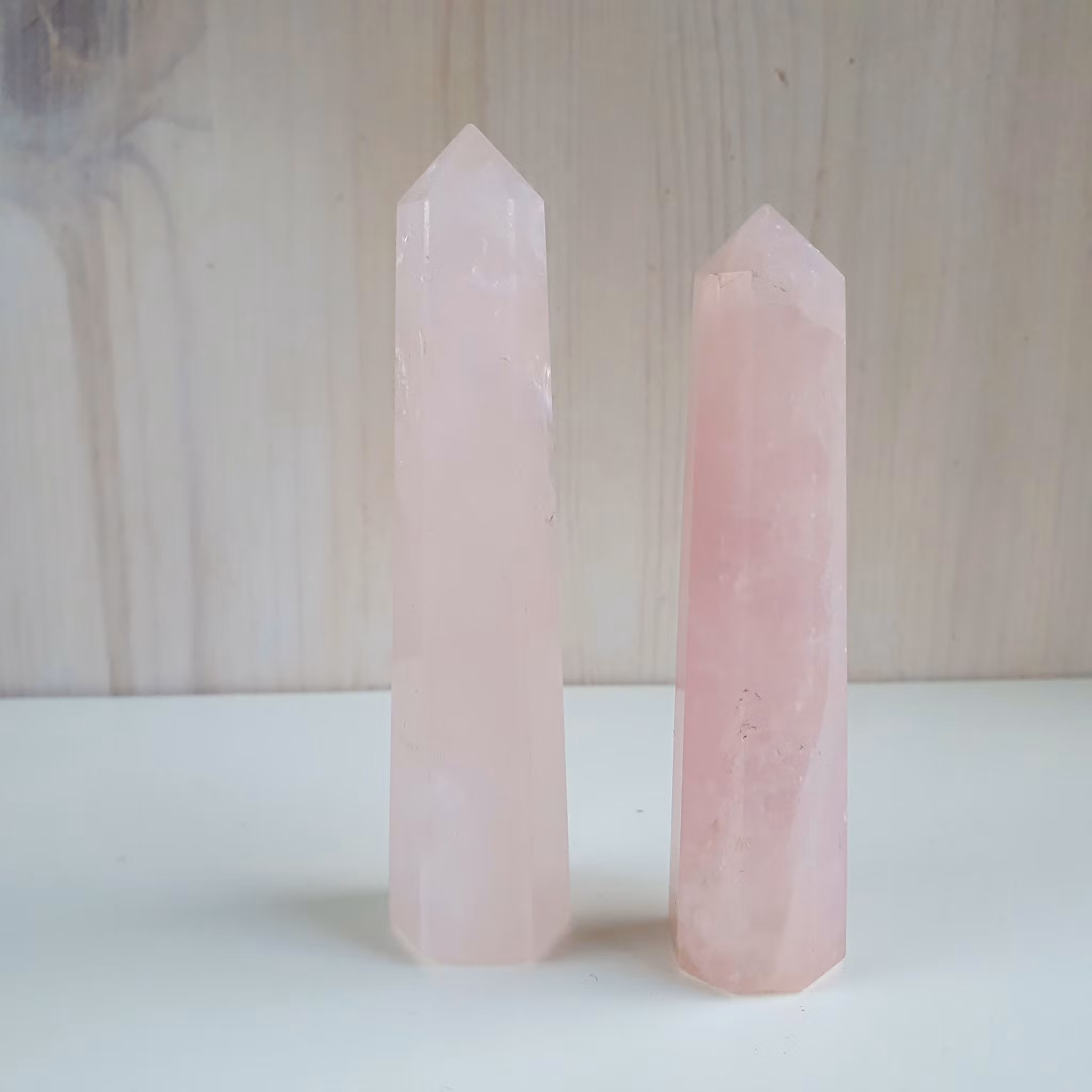 Spets av Rosenkvarts, ojämnheter förkommer. Vi väljer en fin spets åt dig.
