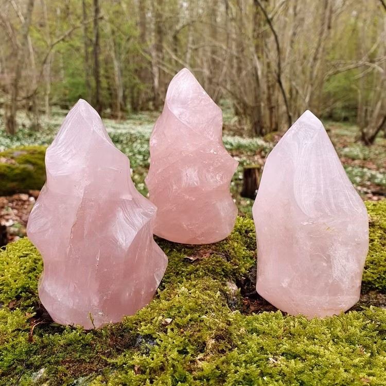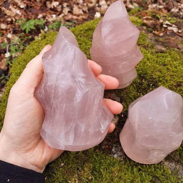 En vacker slipad flamma av Rosenkvarts. Skapar en härliga atmosfär i vilket rum som helst. Vi väljer en fin flamma åt dig.