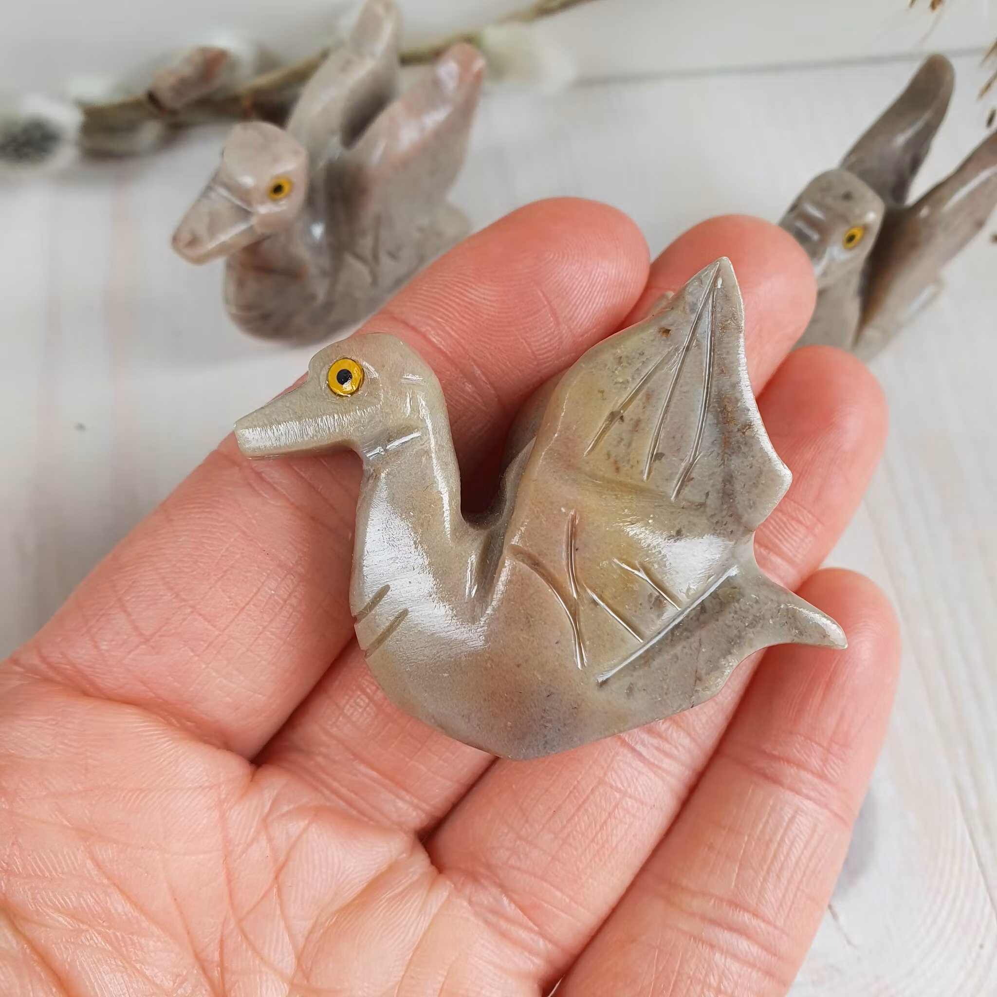 Hem › Formade/slipade stenar › Skivor, djur och övriga former › Svan av täljsten 4x3,5 cm. Vi väljer Svan av täljsten 4x3,5 cm. Vi väljer I lager. 0 kr 69 kr Köp En liten svan av täljsten/såpsten. Vi väljer en fin svan åt dig.Mått: ca 4x3,5 cmVikt: ca 28 g Flera populära produkter Drakhuvud av Labradorit 4,5cm. Detta ex 399 kr Läs mer Röd Jaspis Spöke 5,5 cm, vi väljer 273 kr 390 kr Läs mer Lava Skull 6 cm, vi väljer 350 kr Läs mer Selenittorn 6 cm. Vi väljer 59 kr Läs mer