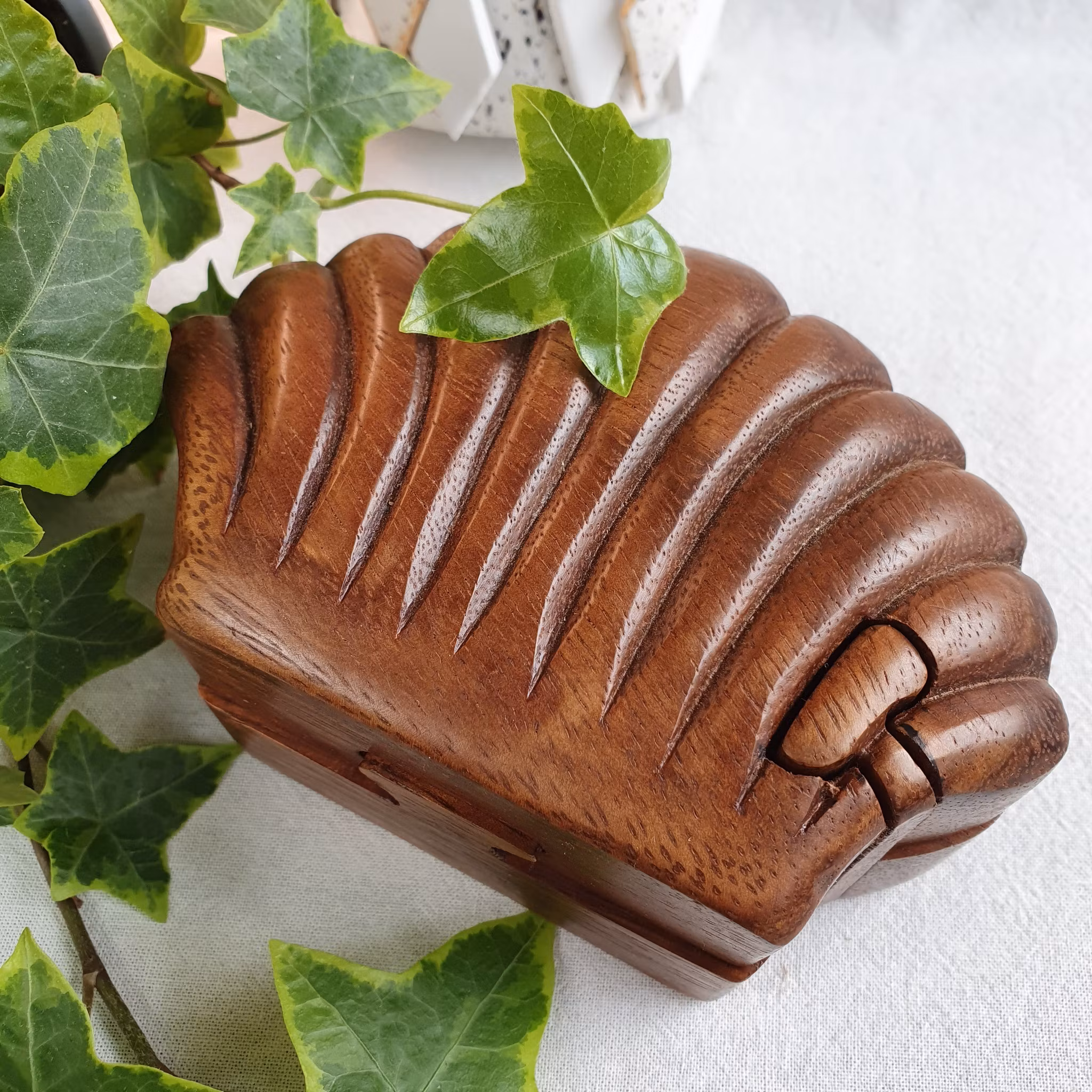 En handgjord ask som fungerar som ett pussel, förvaring, och vacker inredning. Kan du klura ut hur man öppnar den? En perfekt gåva till liten och stor, till dig själv eller som detalj i ditt hem.