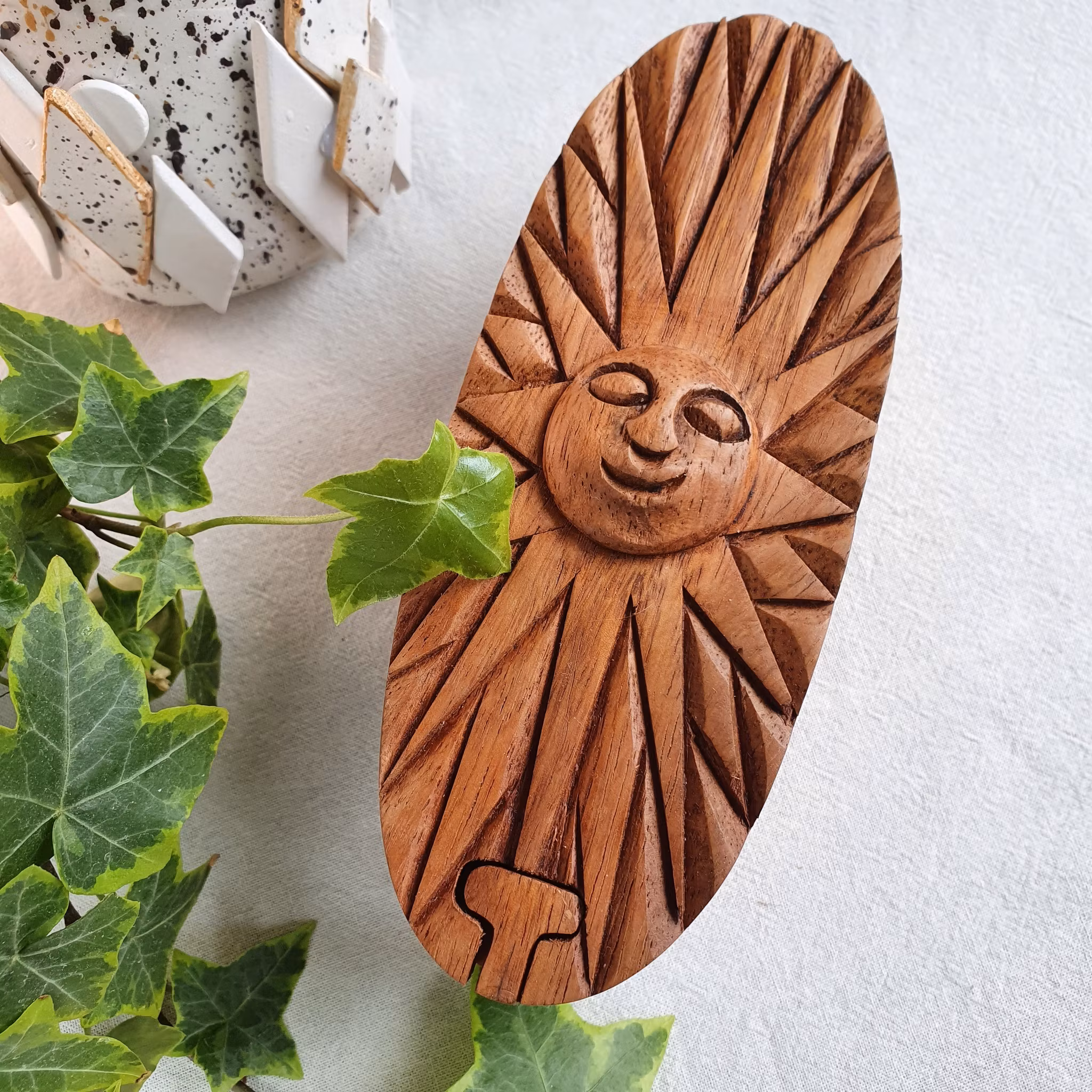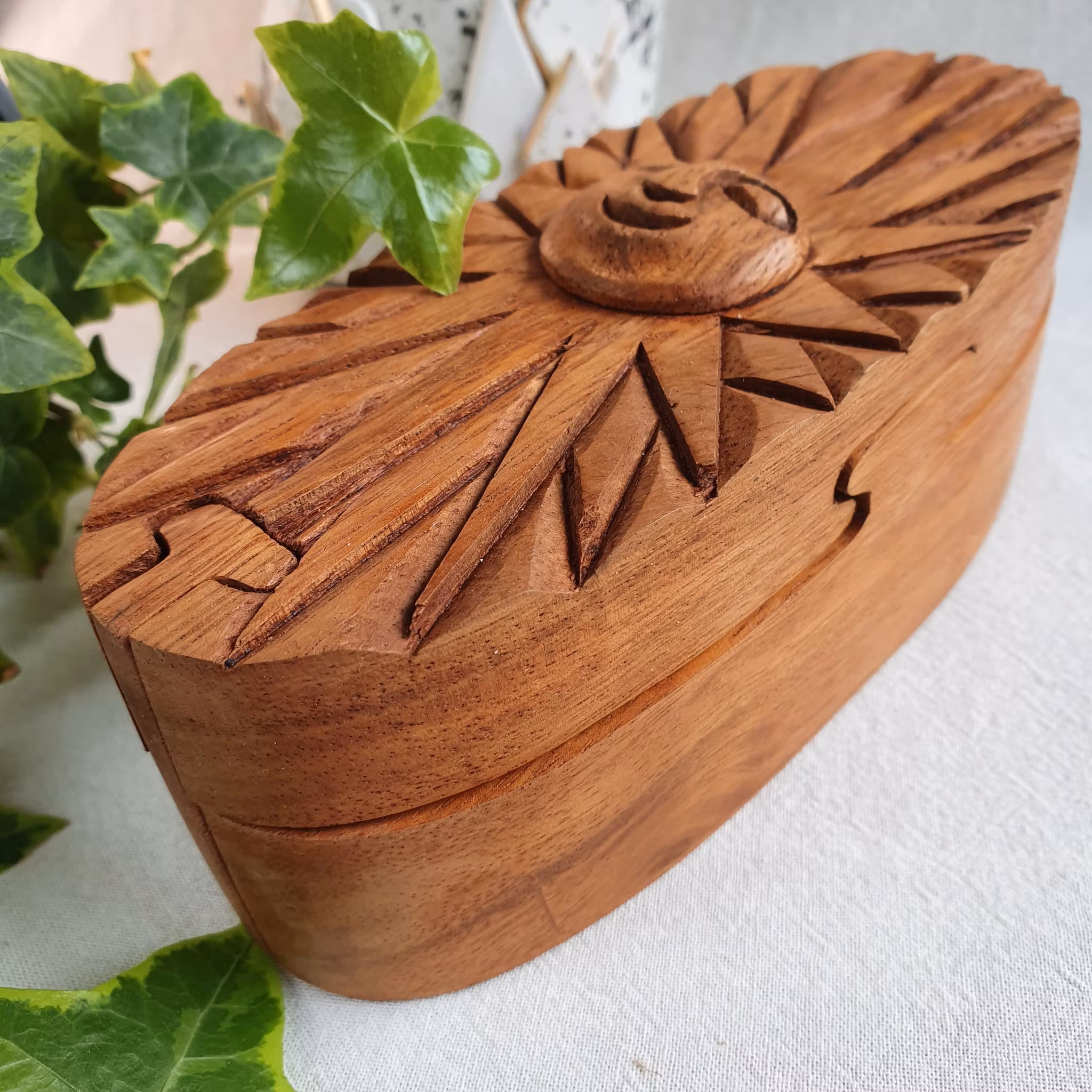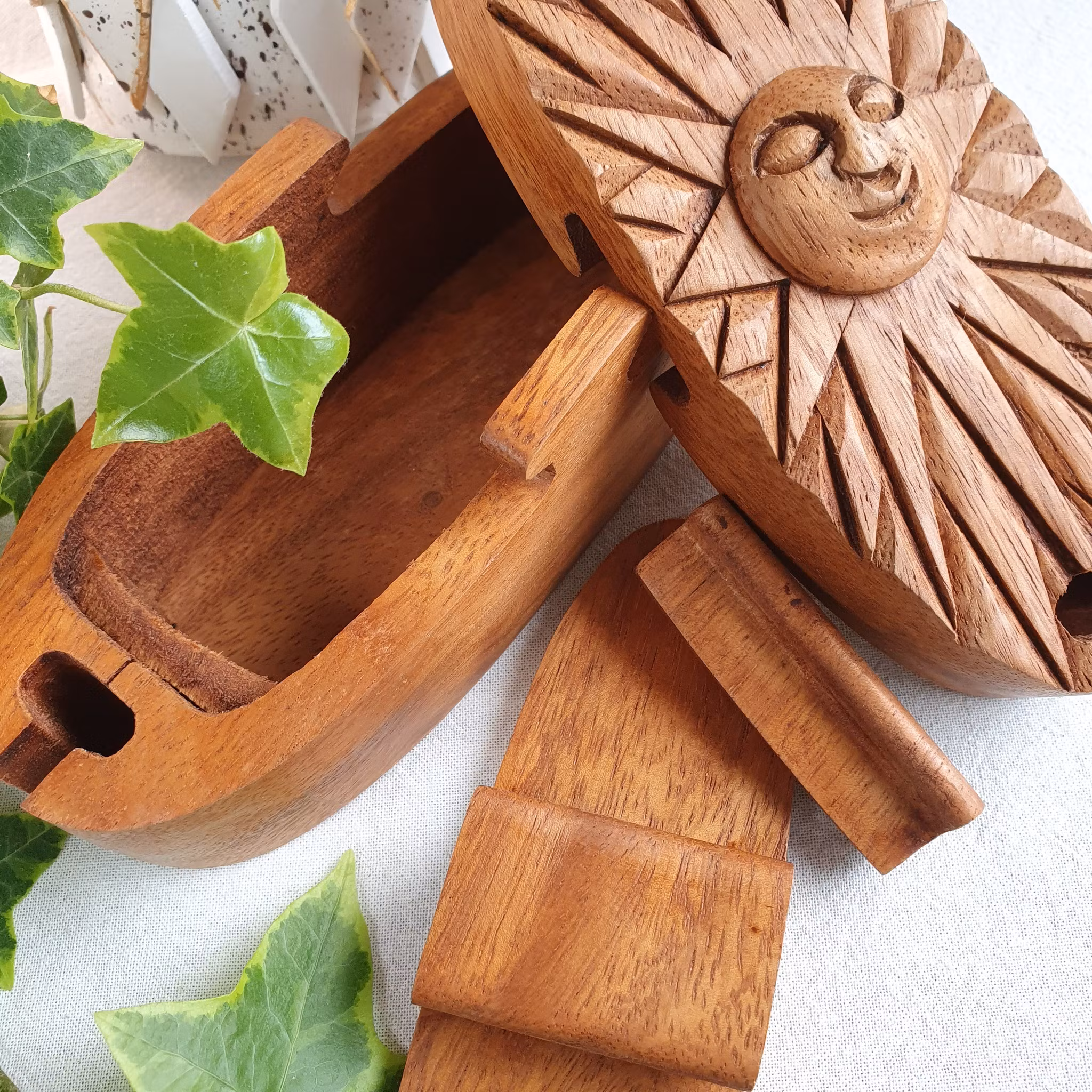 En handgjord ask som fungerar som ett pussel, förvaring, och vacker inredning. Kan du klura ut hur man öppnar den? En perfekt gåva till liten och stor, till dig själv eller som detalj i ditt hem.