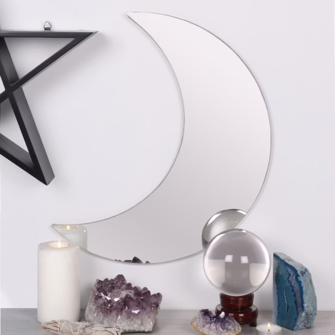 Hem › Inredning, kök och dekoration › Figurer, speglar och dekorativa föremål › Spegel Måne Spegel Måne I lager. 0 kr 479 kr Köp En vacker spegel i form utav en måne, den sitter fast i en baksida av mdf och en diskret krok gör att den är redo att hängas på väggen.Mått: 40x30 cm. Flera populära produkter Saltlampa liten, USB 199 kr Läs mer Träornament på ställ, Triple Moon 139 kr 199 kr Läs mer Miniskylt Home is where you hang your broom 27 kr 39 kr Läs mer Miniskylt Kitchen Witch 27 kr 39 kr Läs mer