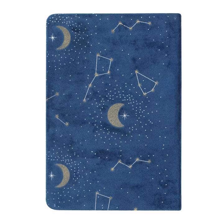 En magisk mjuk anteckningsbok med vackra guldiga motiv på både fram och baksida. Boken har linjerade sidor, guldiga kanter på bladen och ett snöre för att markera vilken sida man är på.