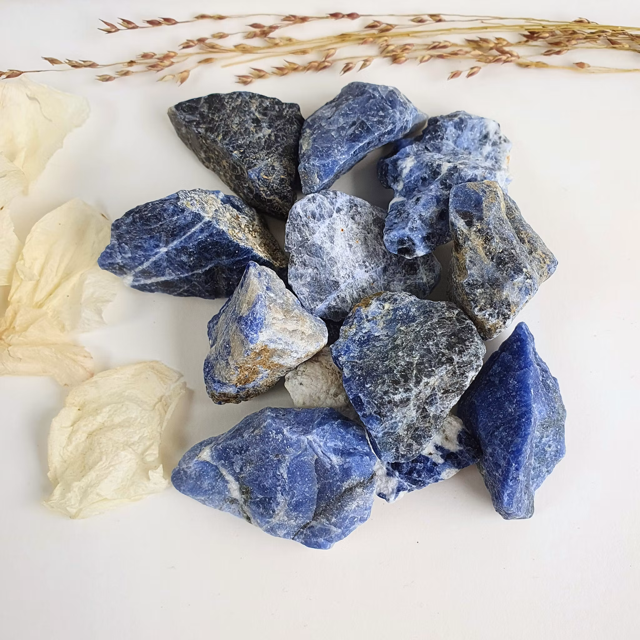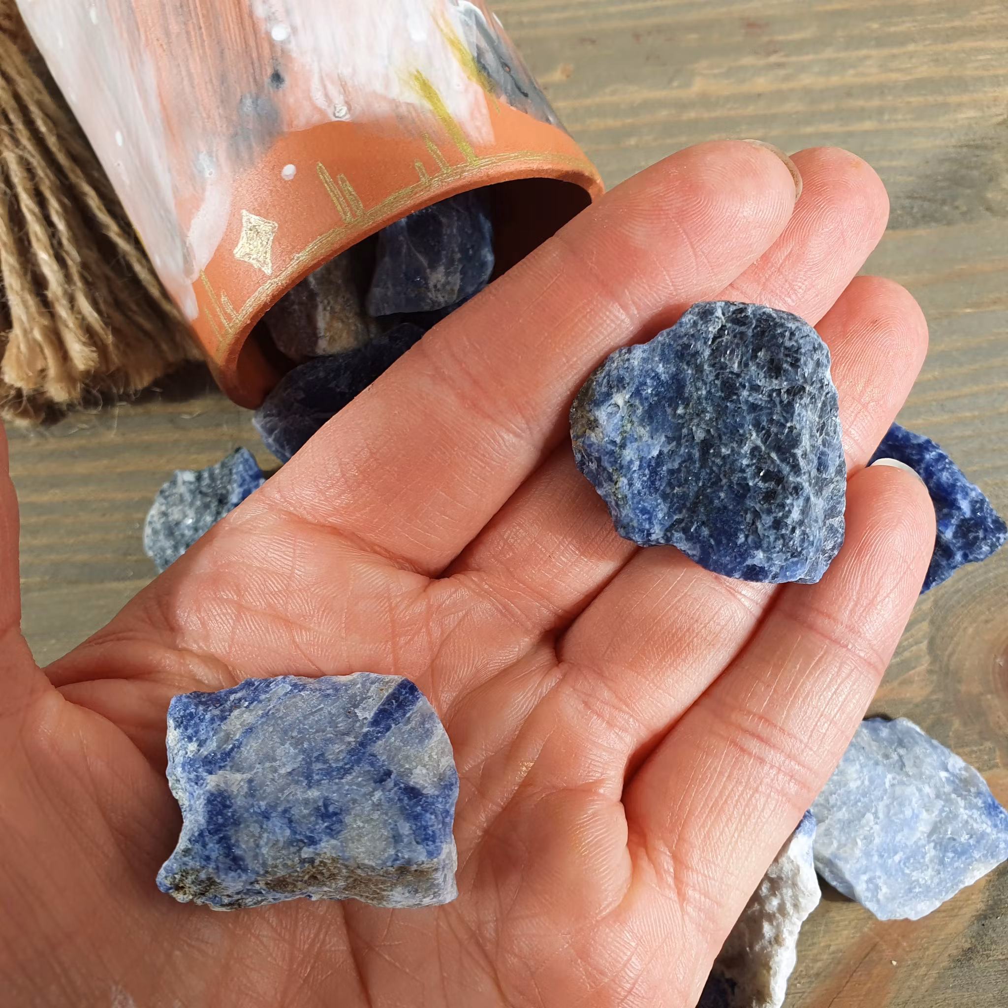 En liten rå Sodalit. Vi väljer en fin sten åt dig.