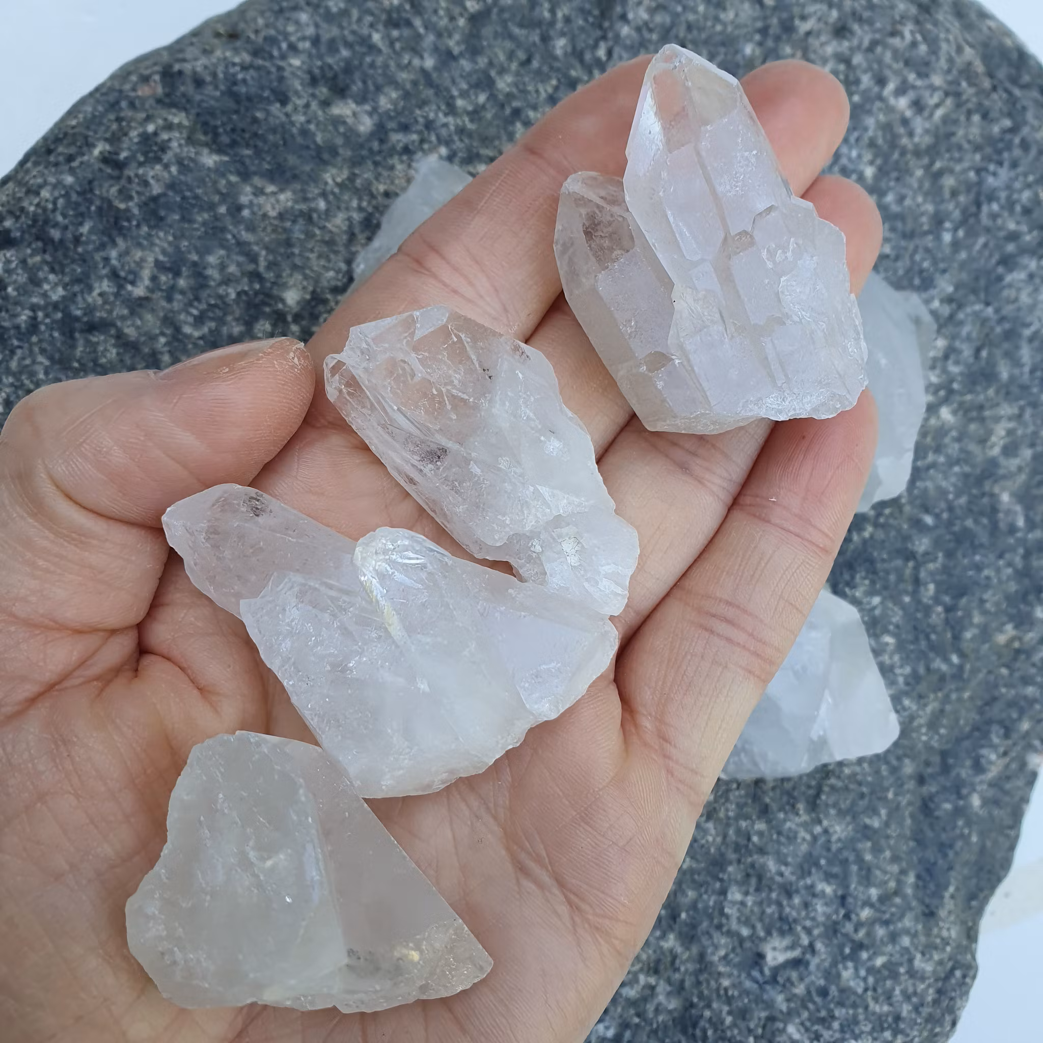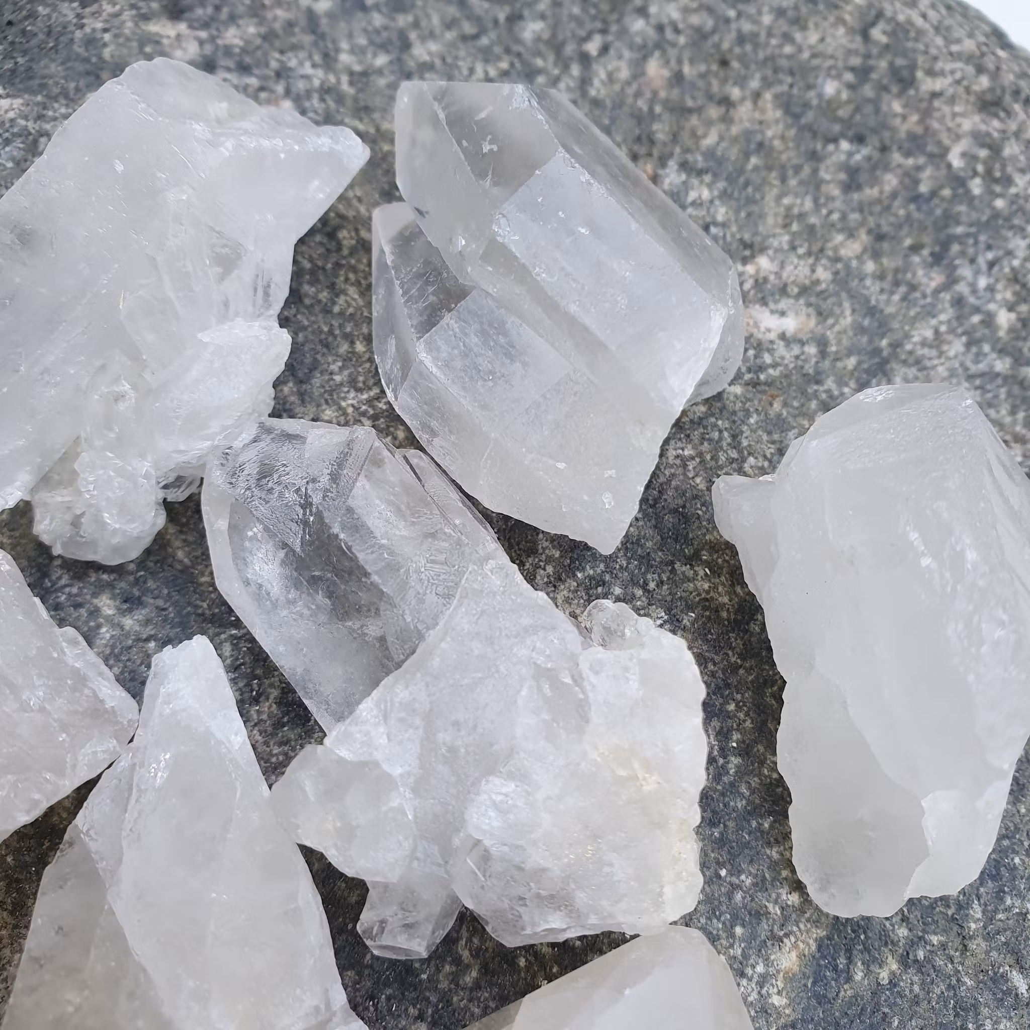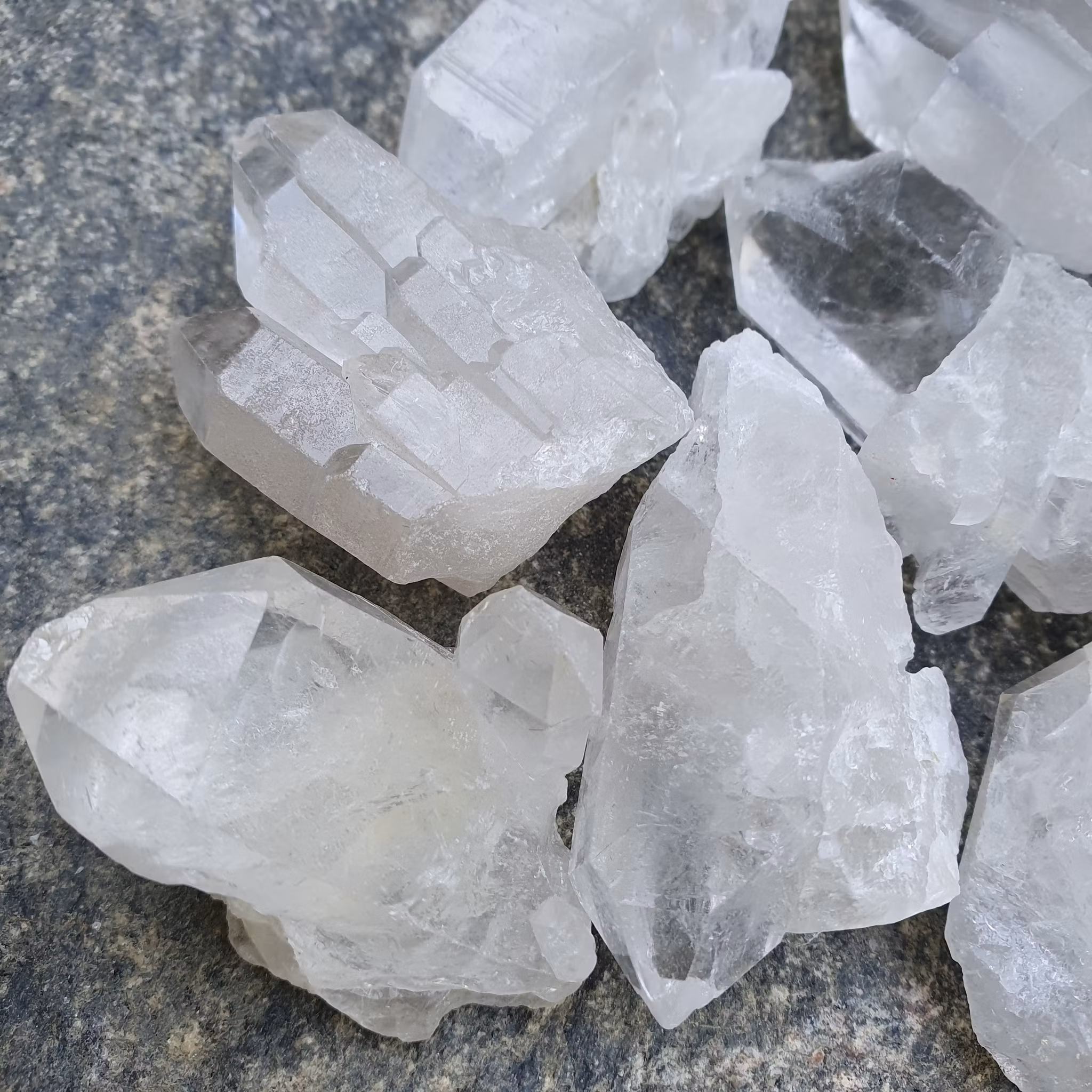 Rå bit bergkristall med enstaka spetsar. Vi väljer en fin sten åt dig.