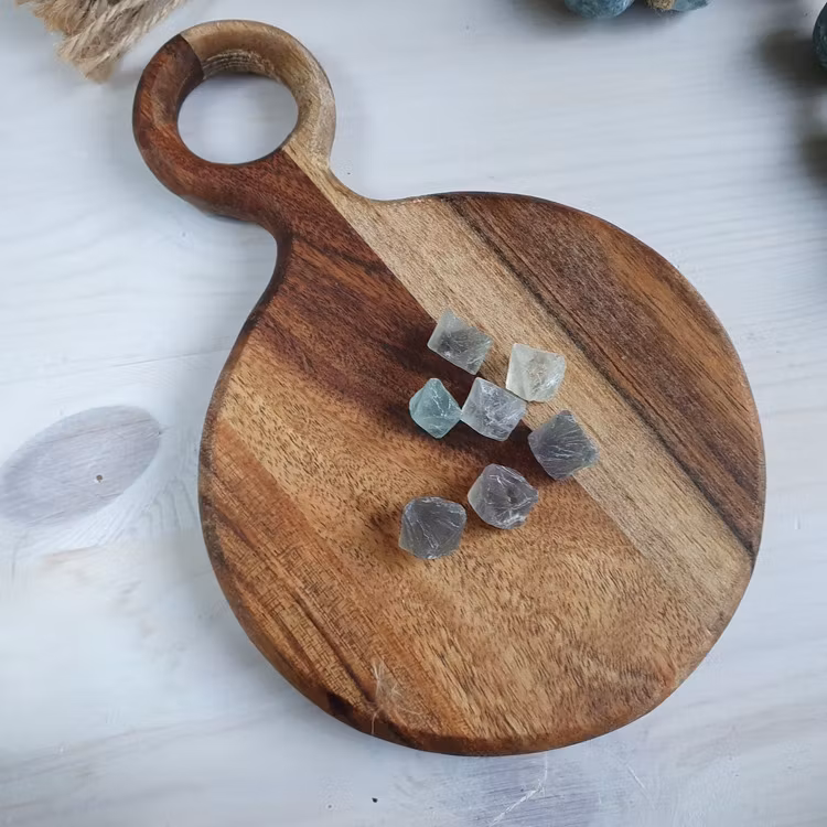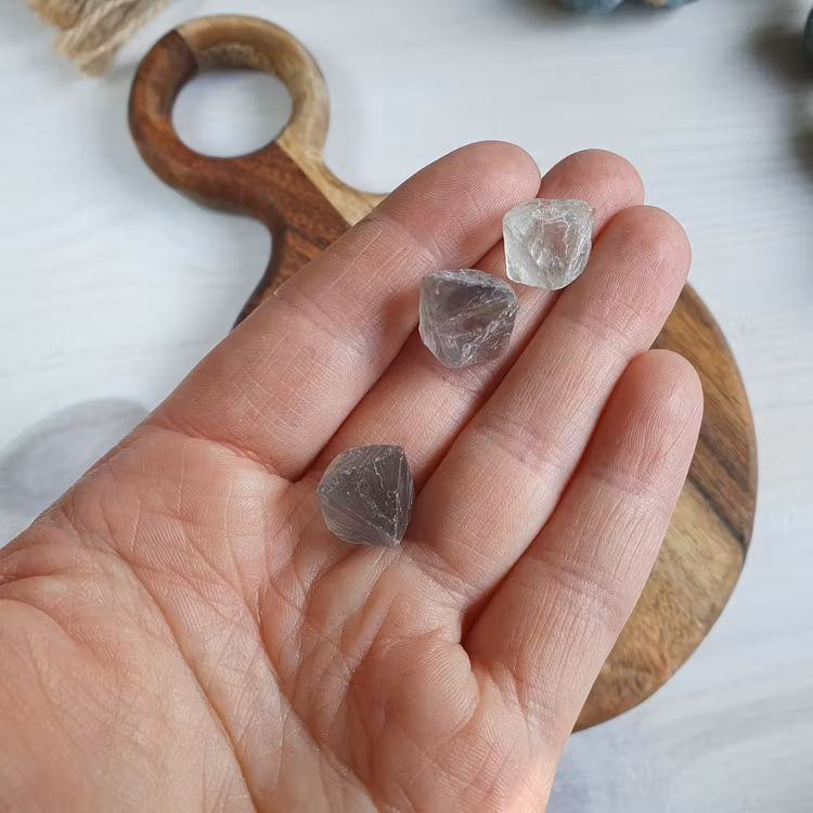 Små oektader av ljusgrön fluorit. Vi väljer en fin sten åt dig.