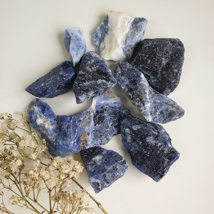 En liten rå Sodalit. Vi väljer en fin sten åt dig.