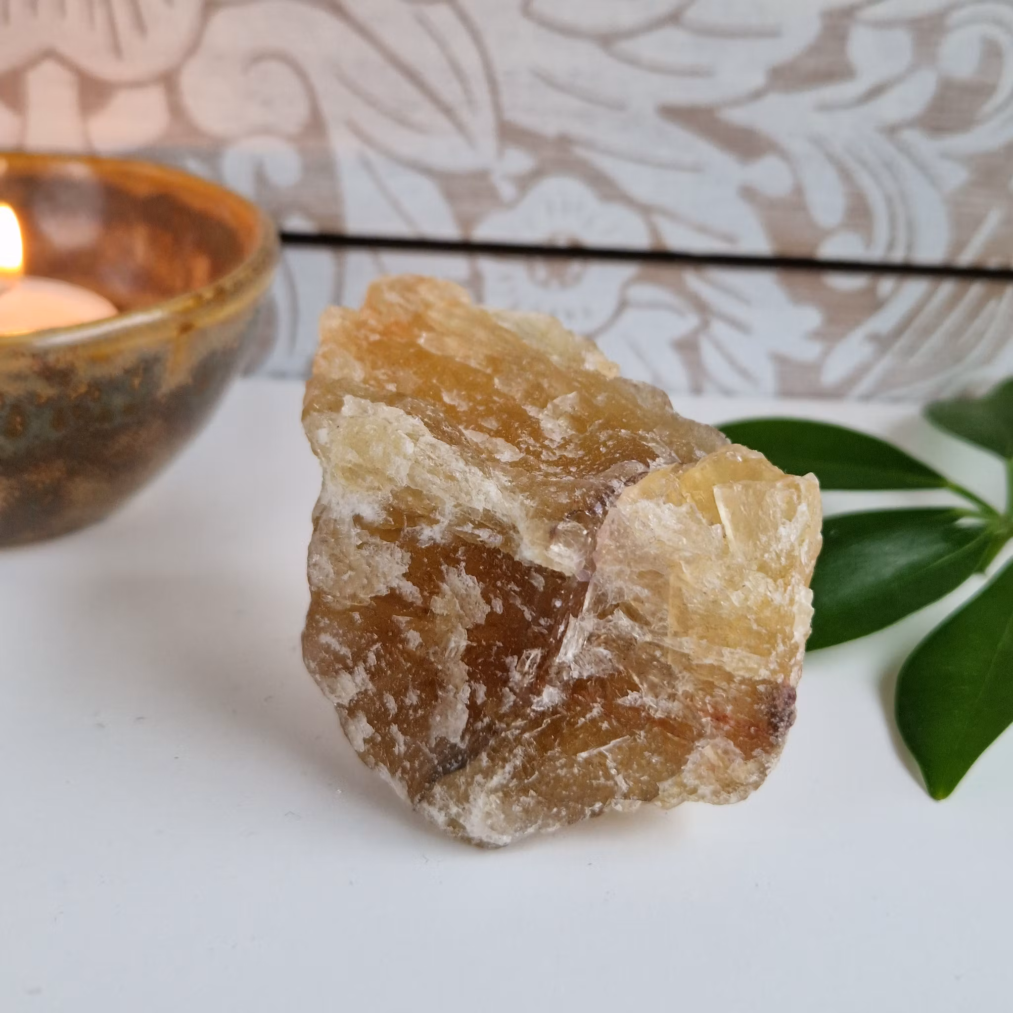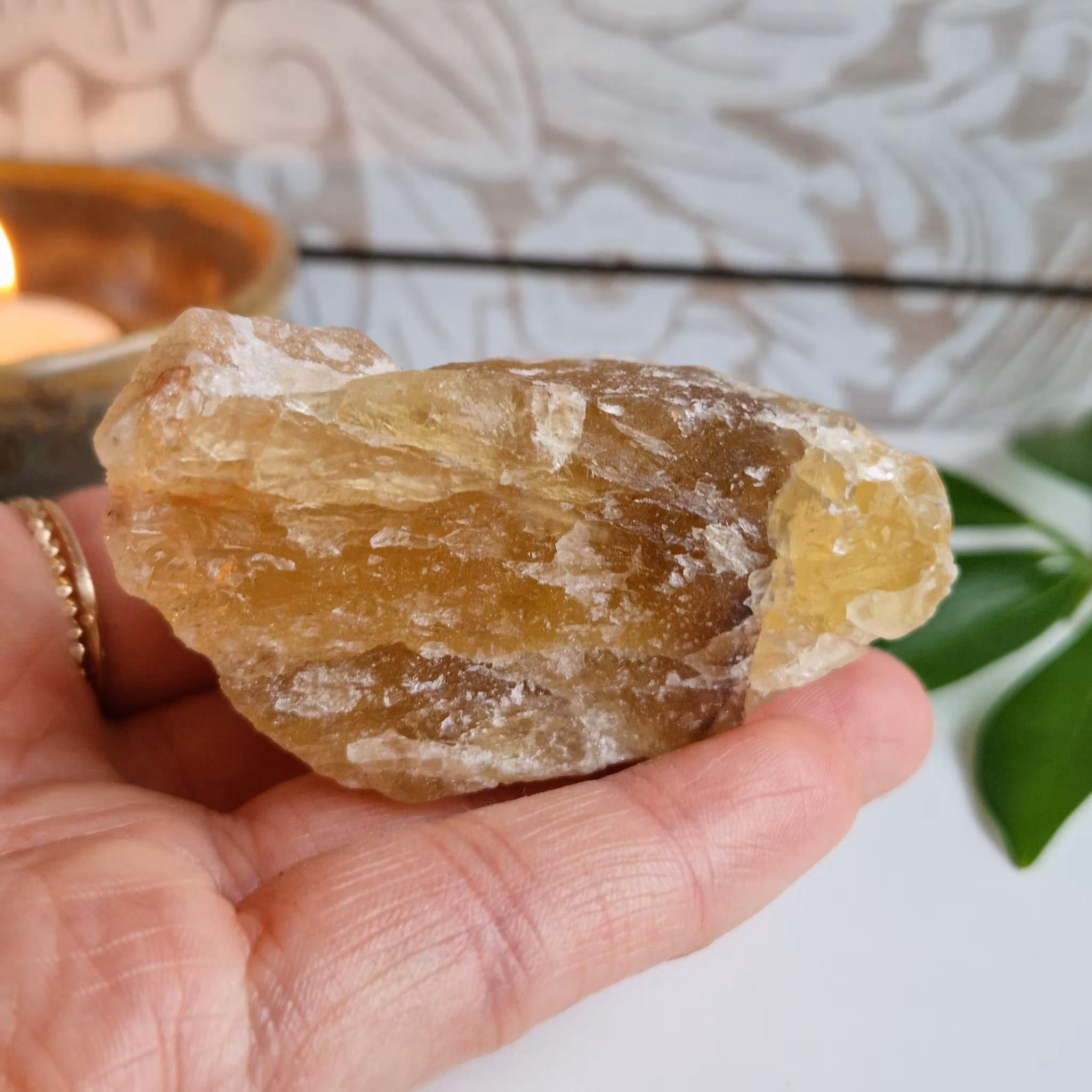 Rå gul Fluorit. Stenen på bilden är den du köper.