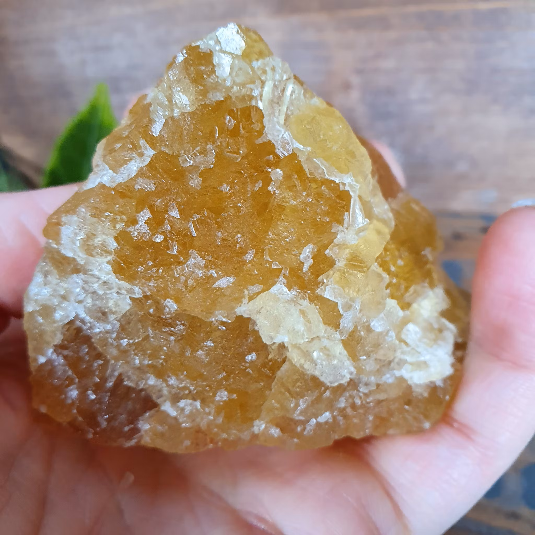 Rå gul Fluorit. Stenen på bilden är den du köper.
