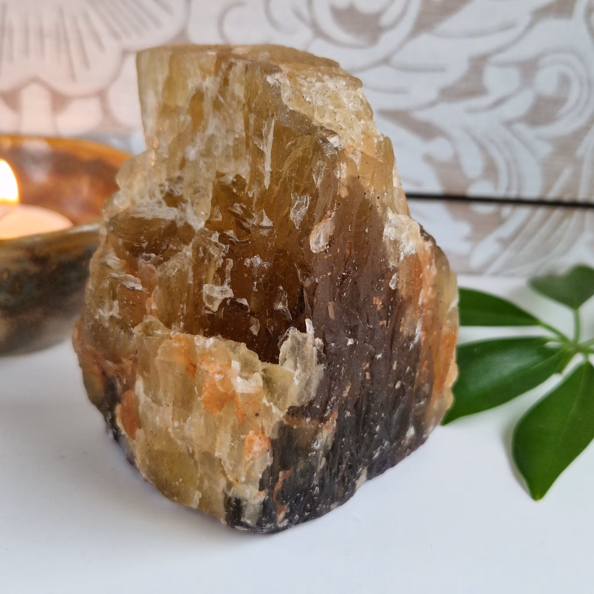 Rå gul Fluorit. Stenen på bilden är den du köper.