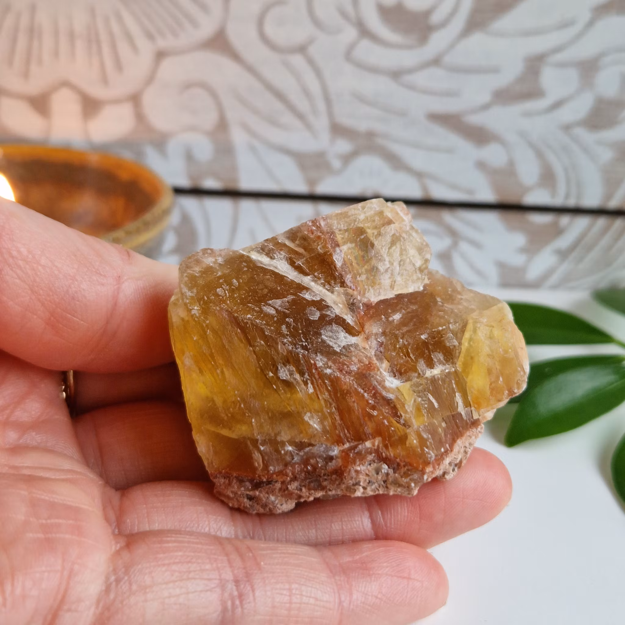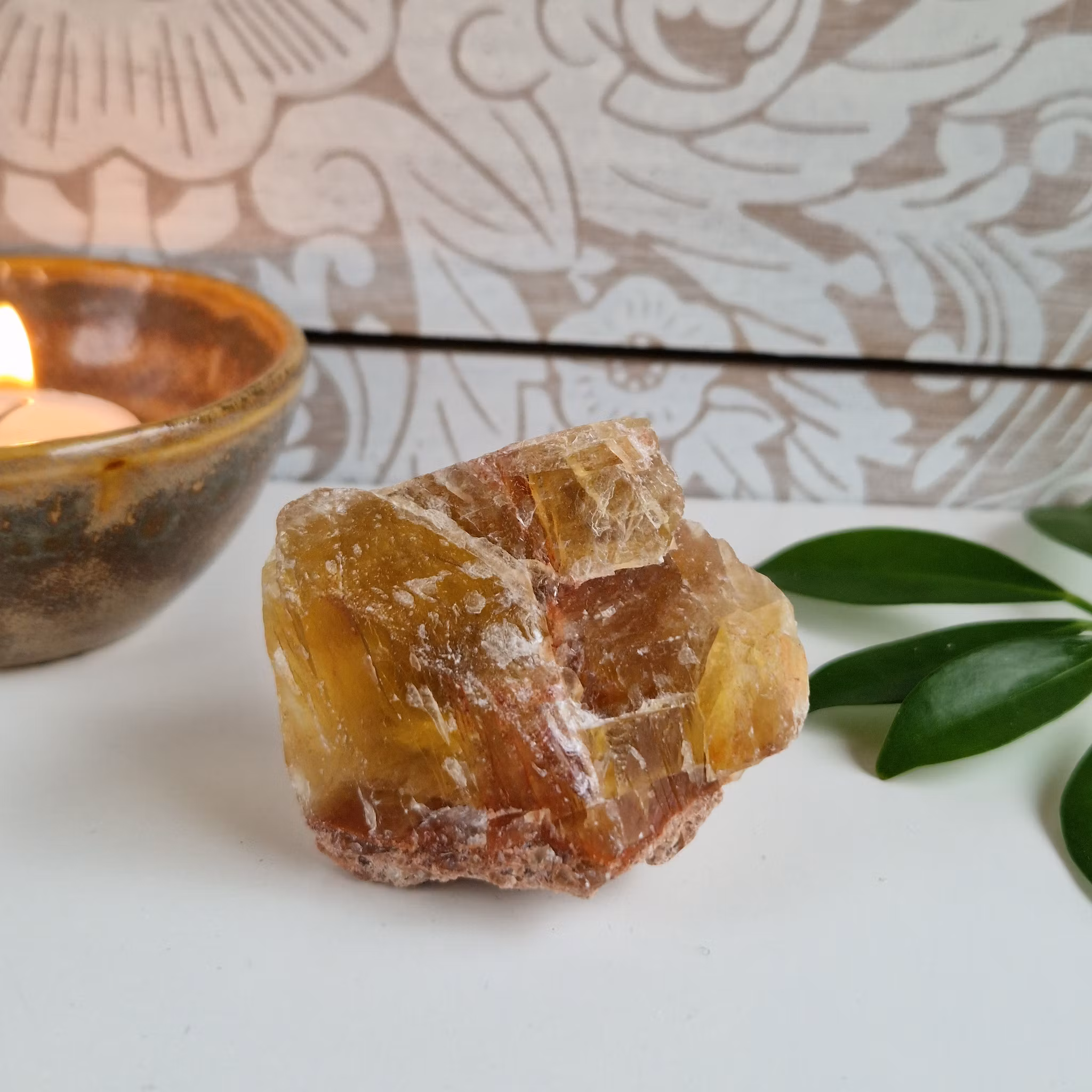 Rå gul Fluorit. Stenen på bilden är den du köper.