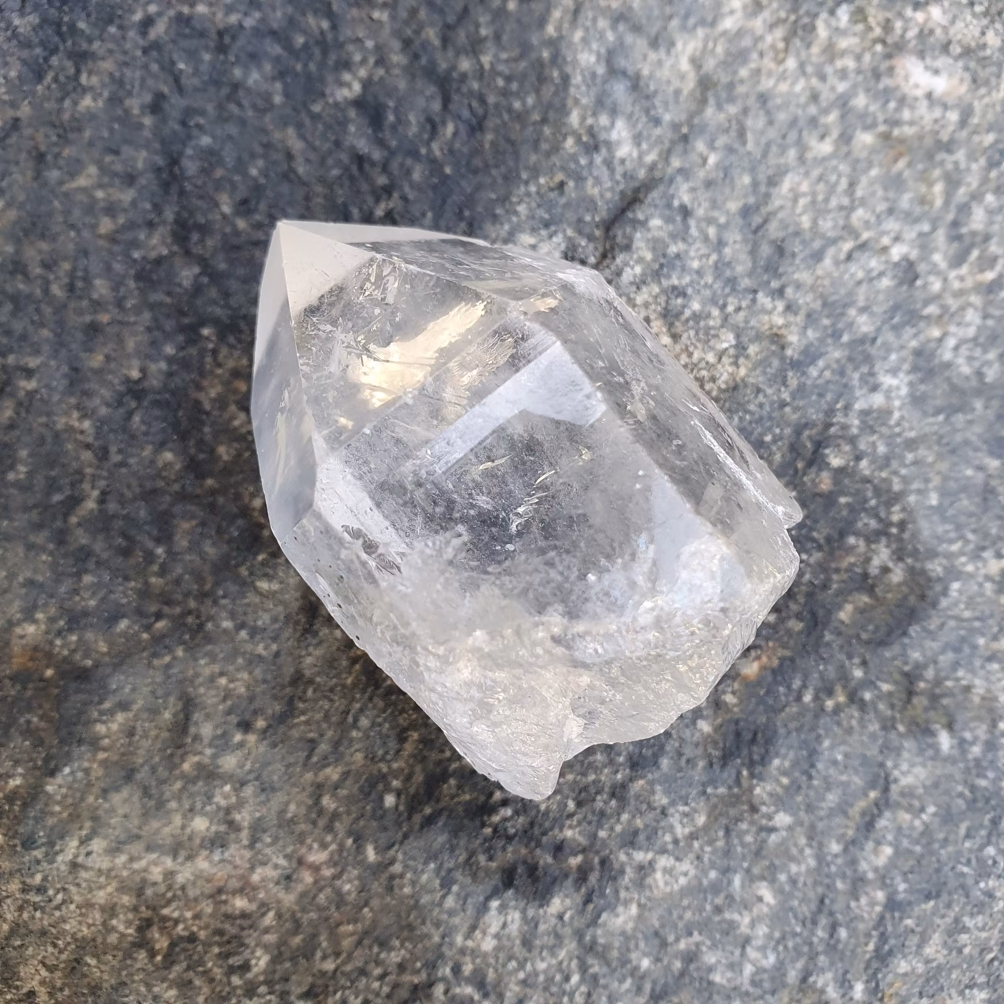 Rå naturlig spets av bergkristall, med naturliga ojämnheter. Stenen på bilden är den du köper.