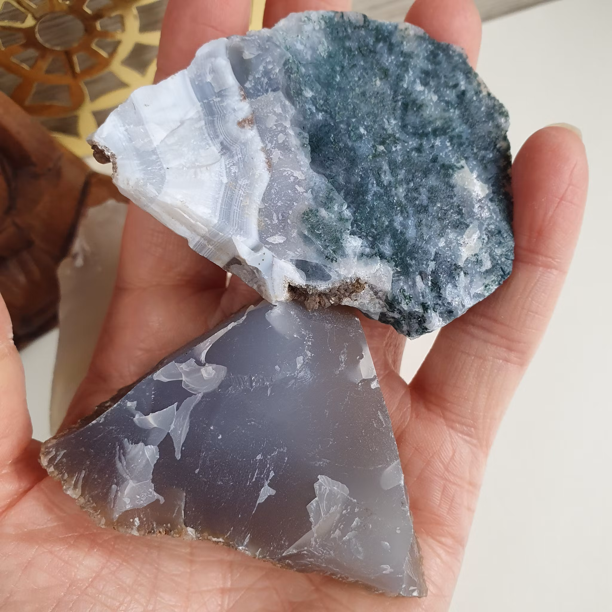 Hem › Råstenar och kluster › Rå Agat, 81-100 g Rå Agat, 81-100 g I lager. 0 kr 35 kr Köp Rå bit av Agat. Vi väljer en fin sten åt dig.Vikt: 81-100 gMått: ca 6-7 cmUrsprung: Brasilien Flera populära produkter Rå Sodalit 10-15 g S 15 kr Läs mer Rå Bergkristall 147 g. Detta ex 95 kr Läs mer Rå Bergkristall med spetsar, 24-31 g. Vi väljer 35 kr Läs mer Rå Bandametist B 16-23 g M 10 kr Läs mer