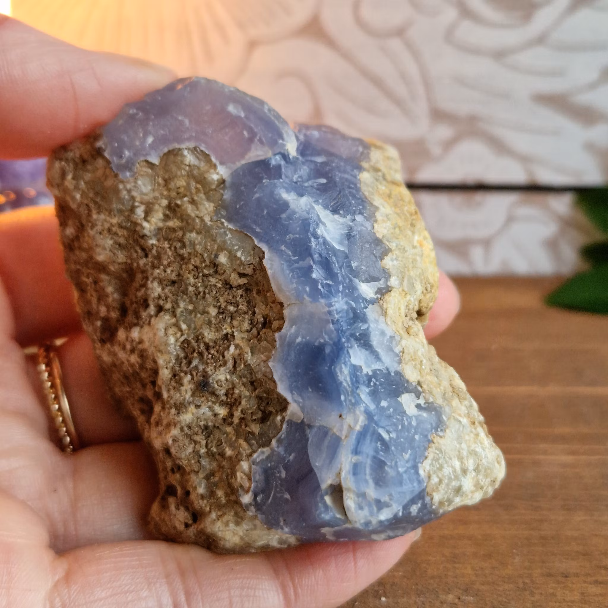 Rå blå bandagat med mica. Stenen på bilden är den du köper.