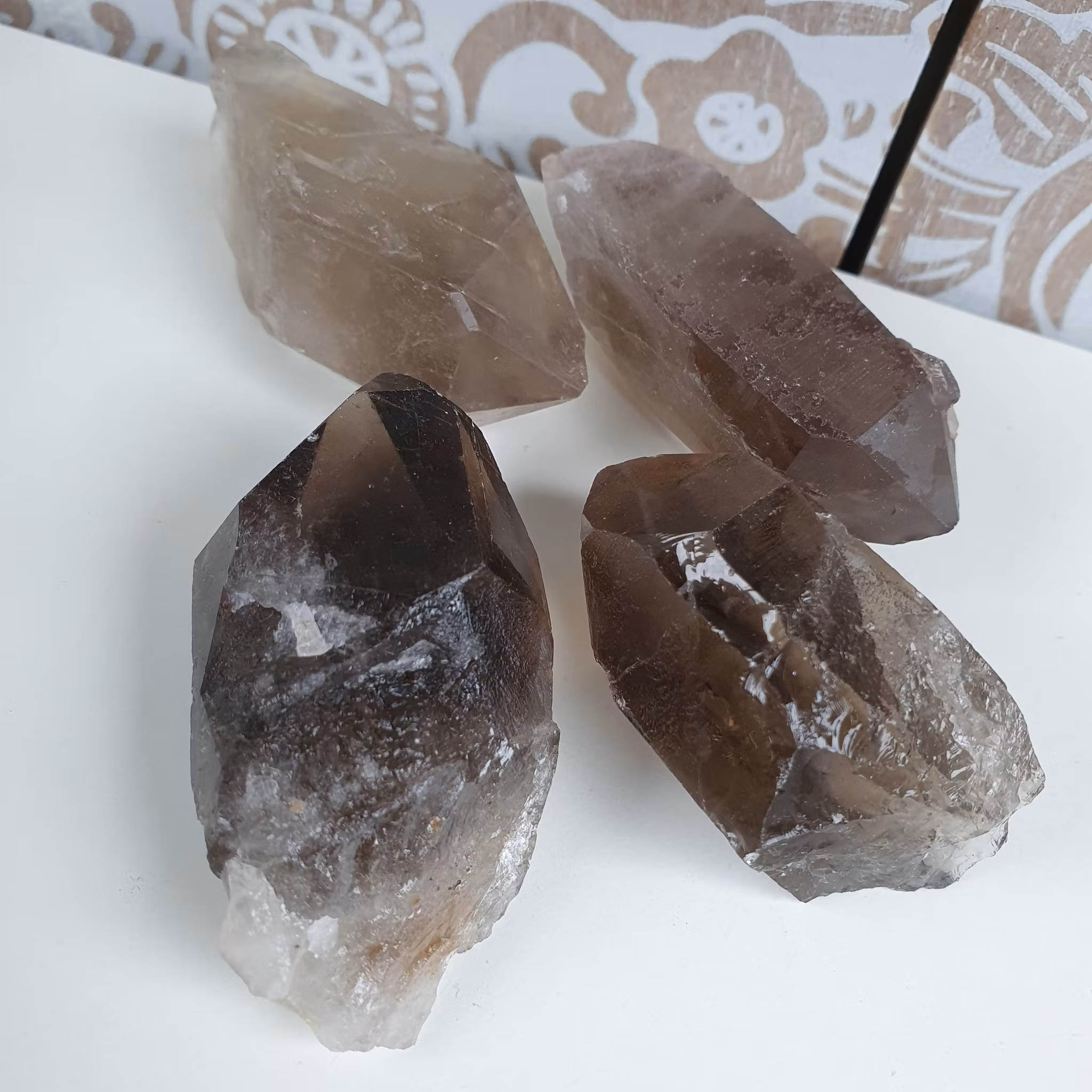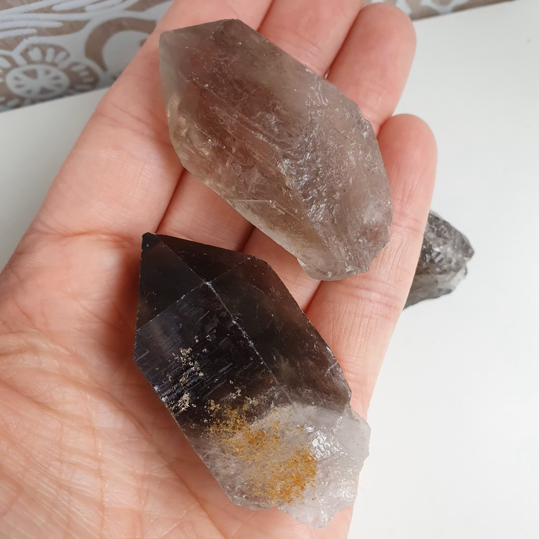 Rå spets av Rökkvarts, naturliga ojämnheter finns. Vi väljer en fin sten åt dig.