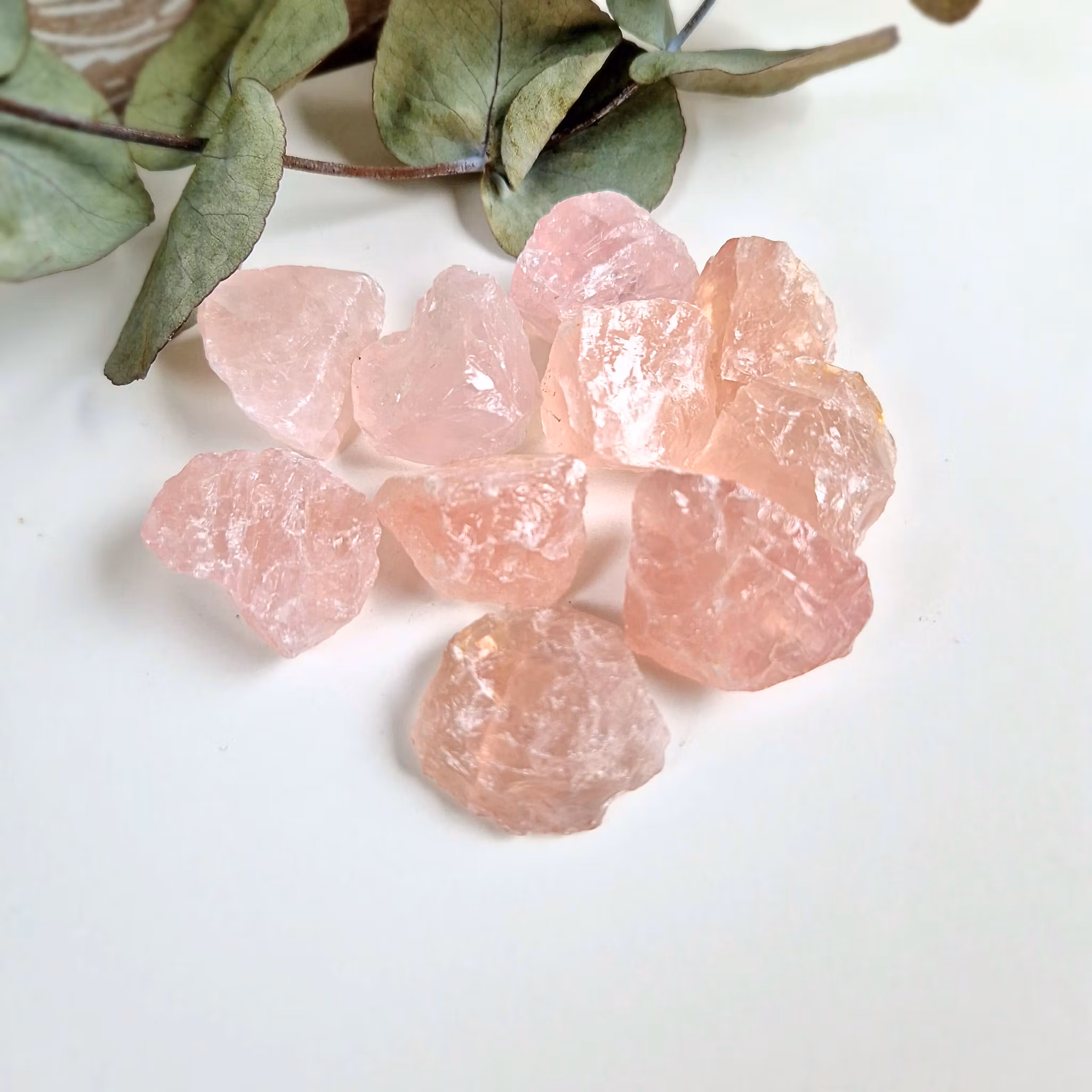 Rå rosenkvarts i fin kvalitet. Vi väljer en fin sten åt sten åt dig.