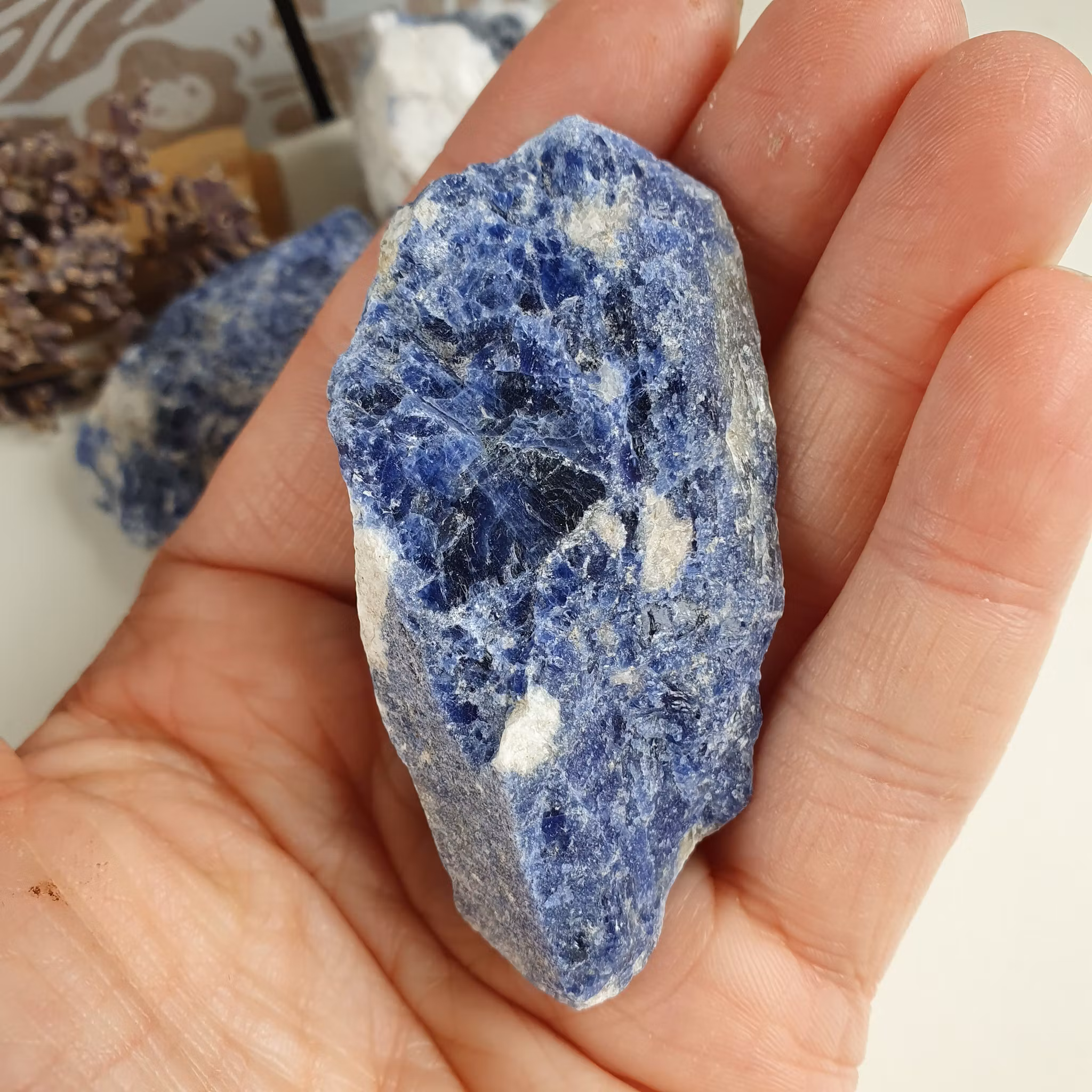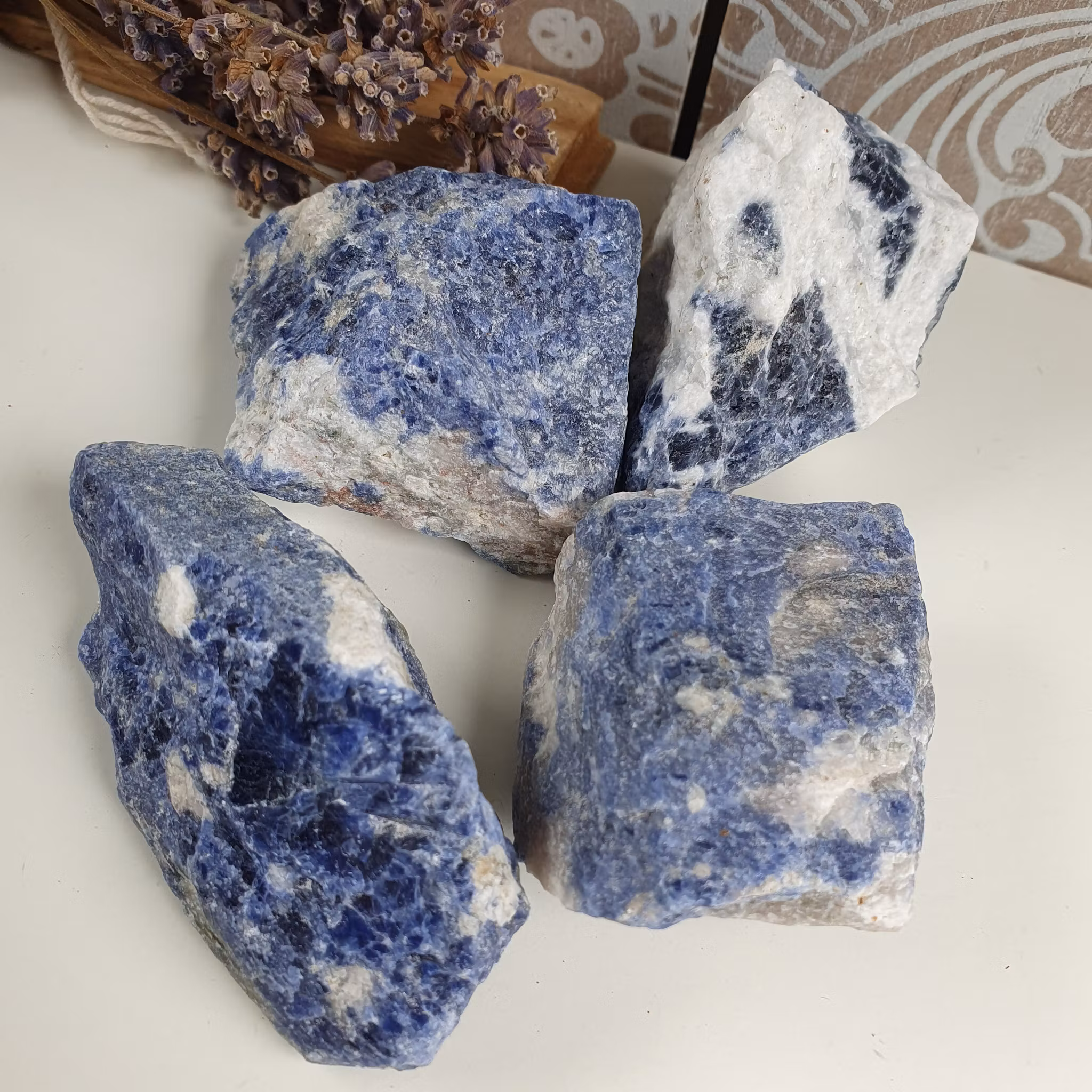 Rå bit av Sodalit. Vi väljer en fin sten åt dig.