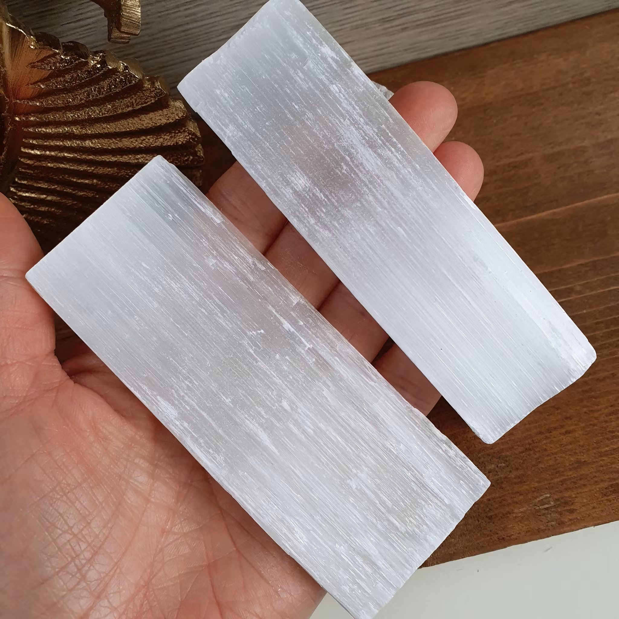 Stav av Selenit. En sten som atbetar med de högre chakrorna. Stödjer meditationsarbete och renar dig själv och din omgivning. En mineral som är ett måste i din samling.