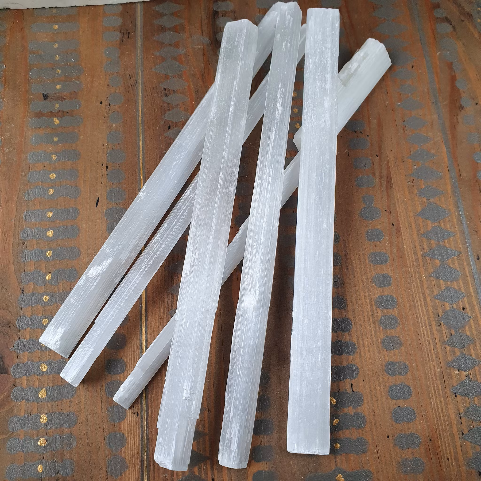 Stav av Selenit. En sten som atbetar med de högre chakrorna. Stödjer meditationsarbete och renar dig själv och din omgivning. En mineral som är ett måste i din samling.