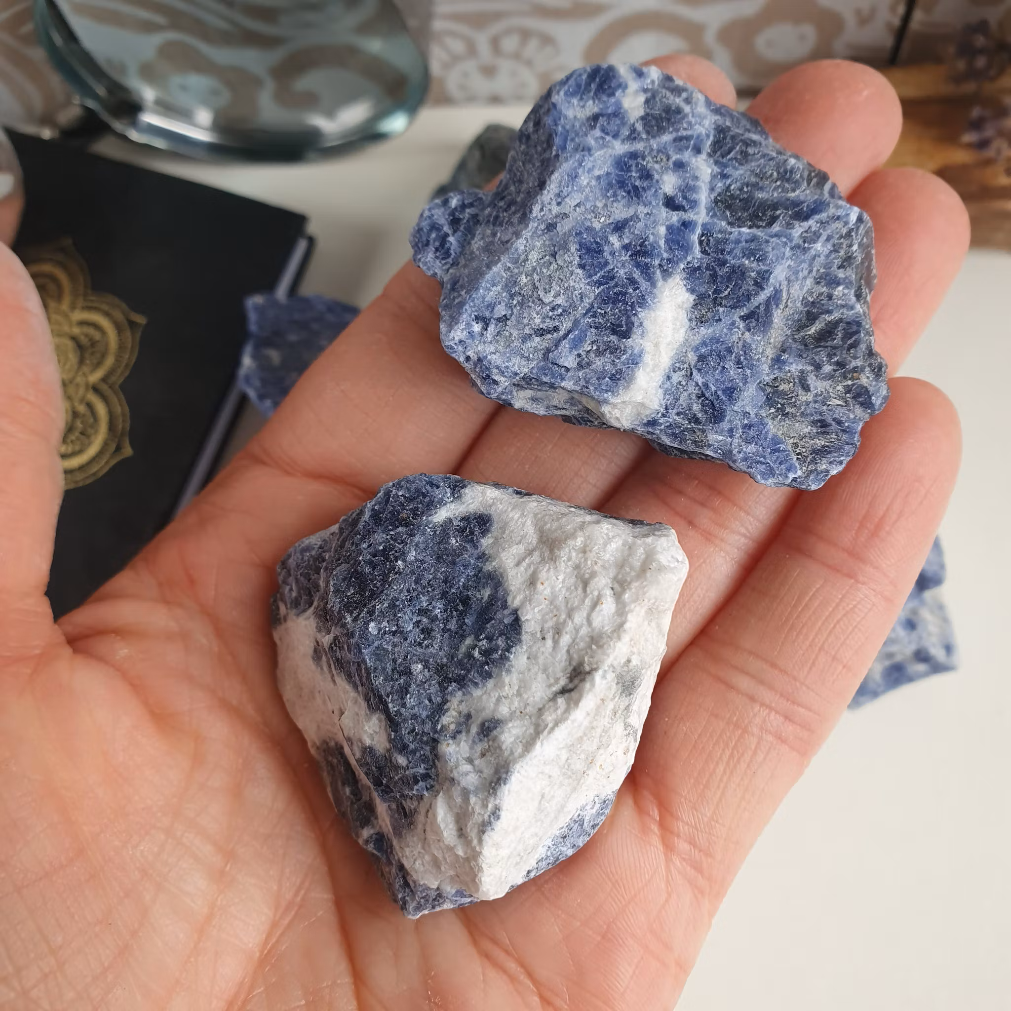 Rå bit av Sodalit. Vi väljer en fin sten åt dig.