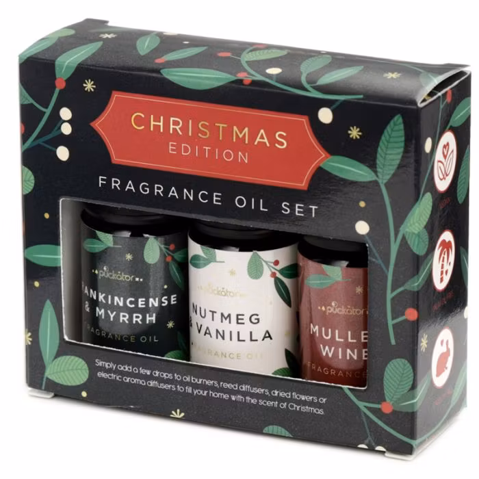 Julblommiga Doftoljor - Glögg, Muskot & Vanilj, Frankincense & Myrra 3x10 ml