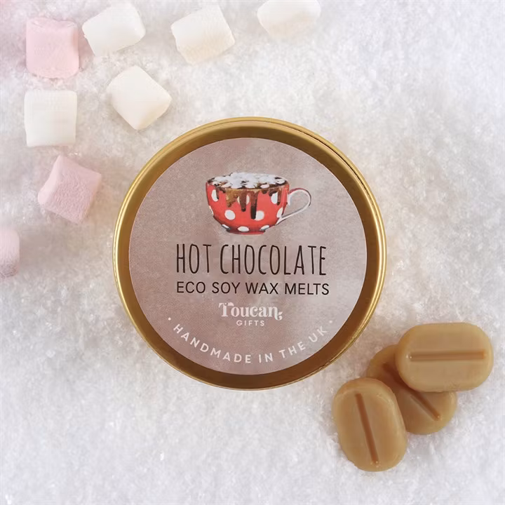Handgjort doftvax från England i en plåtburk med skruvlock och med 12 små doftbönor i varje. Doft: Varm Choklad. Doftvax användes tillsammans med en aromalampa, finns i vårt sortiment.
