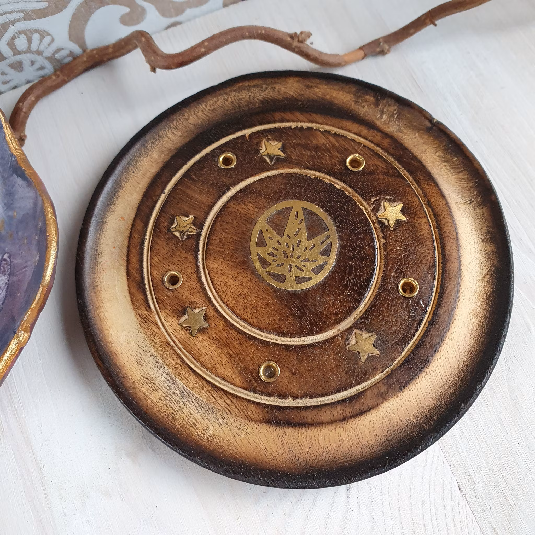 1 st rökelsehållare för stickor och koner gjort av mangoträ. Varje hållare är handgjord och därför ser inte alla identiska ut med fotot. Små ojämnheter kan förekomma.