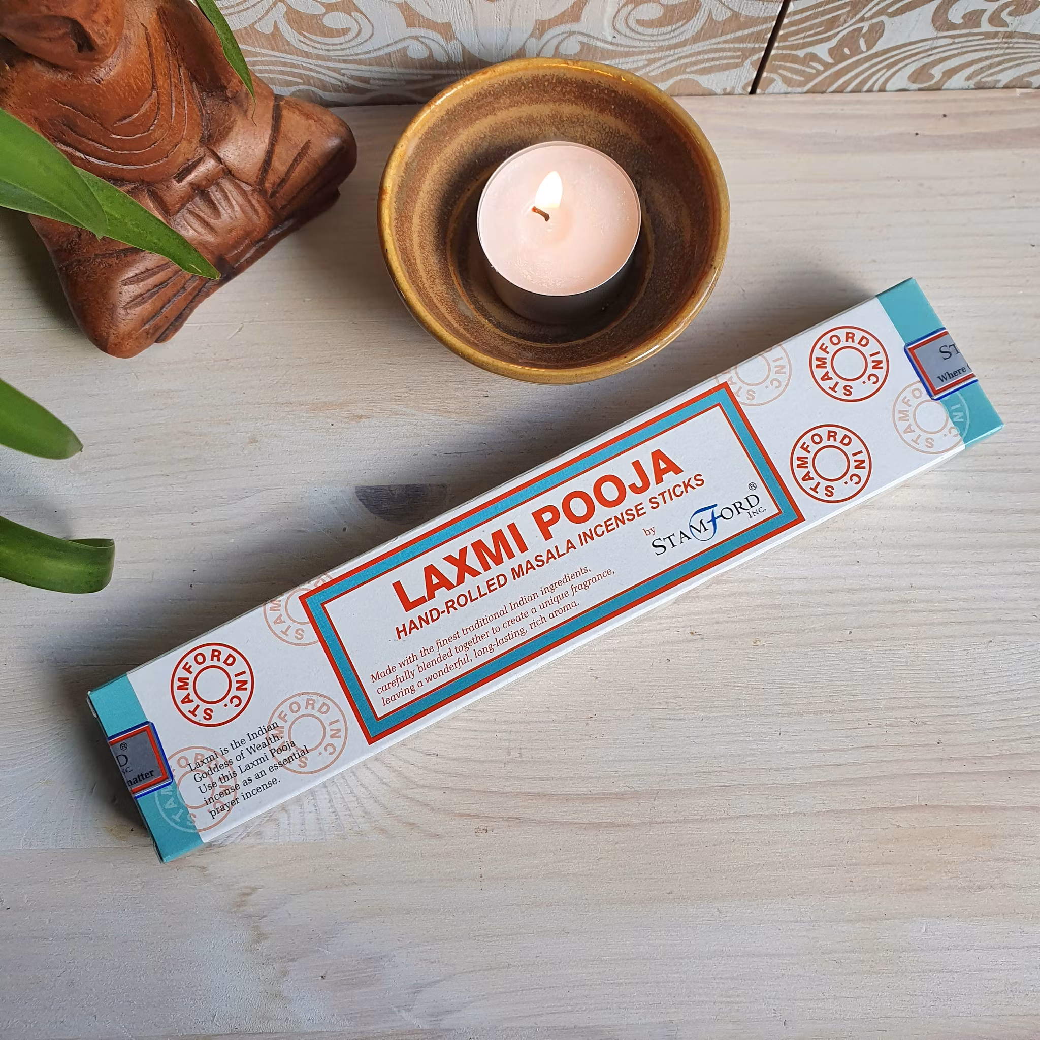 Stamford Masala Rökelse Stickor, användes tillsammans med rökelsehållare. Gudinnan Laxmi är en gudinna för rikedom, en rökelse för bön.
