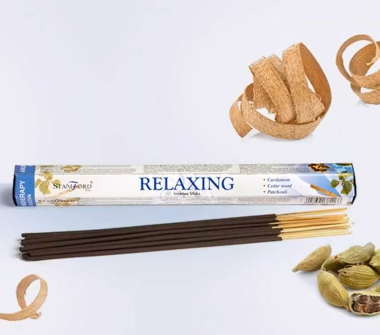 Hem › Rökelse, doft, smudgning och hållare › Rökelsepinnar › Rökelse Stamford Relaxing Rökelse Stamford Relaxing I lager. 0 kr 20 kr Köp Rökelse Stamford Relaxing. Doft: Kardemumma, cederträ, patchouliUngefärligt antal stickor per förpackning: 20.Brinntid: 30 min Flera populära produkter Rökelse Satya Champa 29 kr Läs mer Rökelse Satya Nag Champa Californian White Sage (Salvia) 29 kr Läs mer Rökelse Stamford Masala Citronella 25 kr Läs mer Rökelse Stamford Masala Opium 25 kr Läs mer