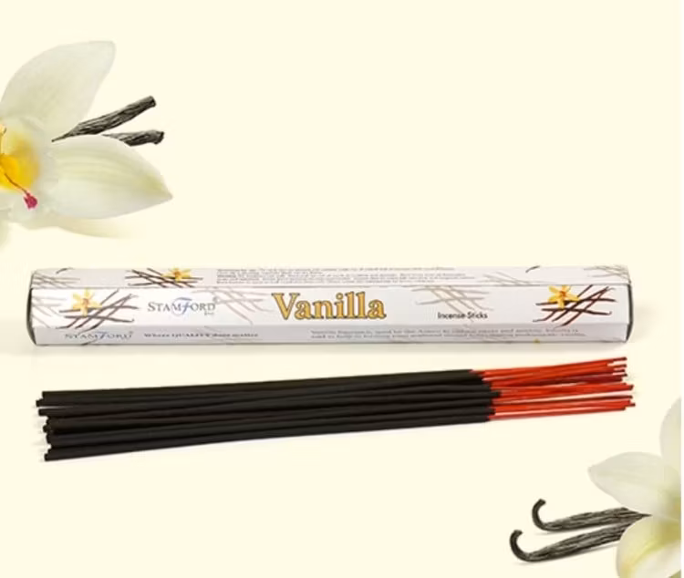 Hem › Rökelse, doft, smudgning och hållare › Rökelsepinnar › Rökelse Stamford Vanilla Rökelse Stamford Vanilla I lager. 0 kr 20 kr Köp Rökelse Stamford Vanilla (Vanilj).Ungefärligt antal stickor per förpackning: 20 Flera populära produkter Rökelse Stamford Amber 20 kr Läs mer Rökelse Satya Positive Vibes 29 kr Läs mer Rökelse Stamford Hex Frankincense and Myrrh 20 kr Läs mer Stamford Black Rökelse Wizard's Spell 14 kr 20 kr Läs mer
