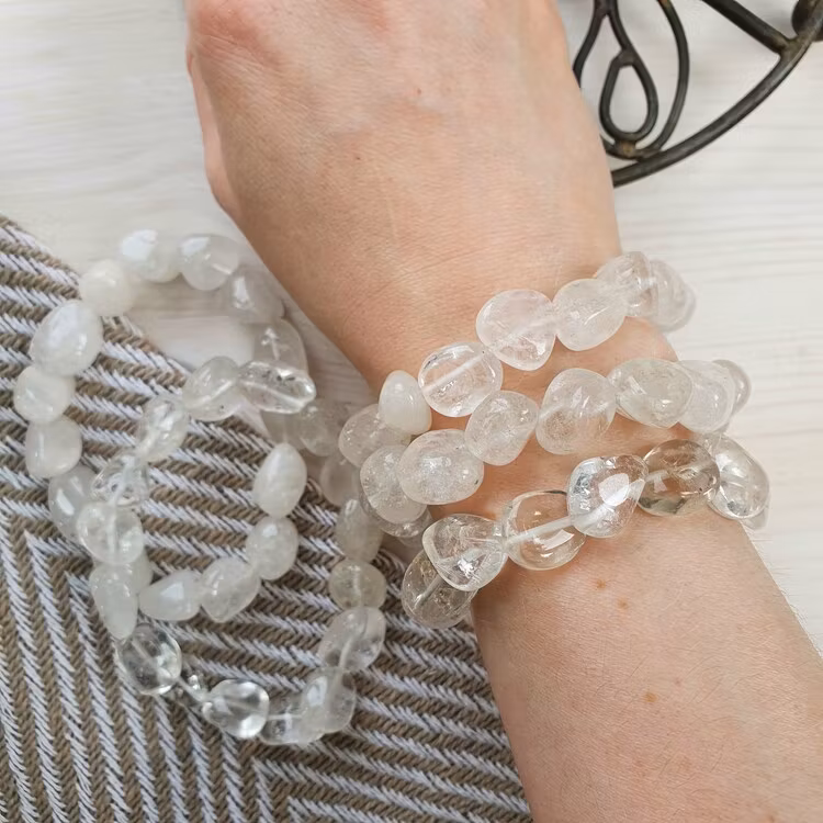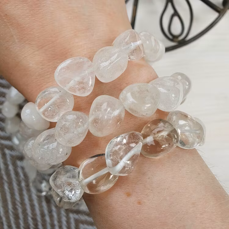 Vackert "chunky" armband med större nuggets av Bergkristall.