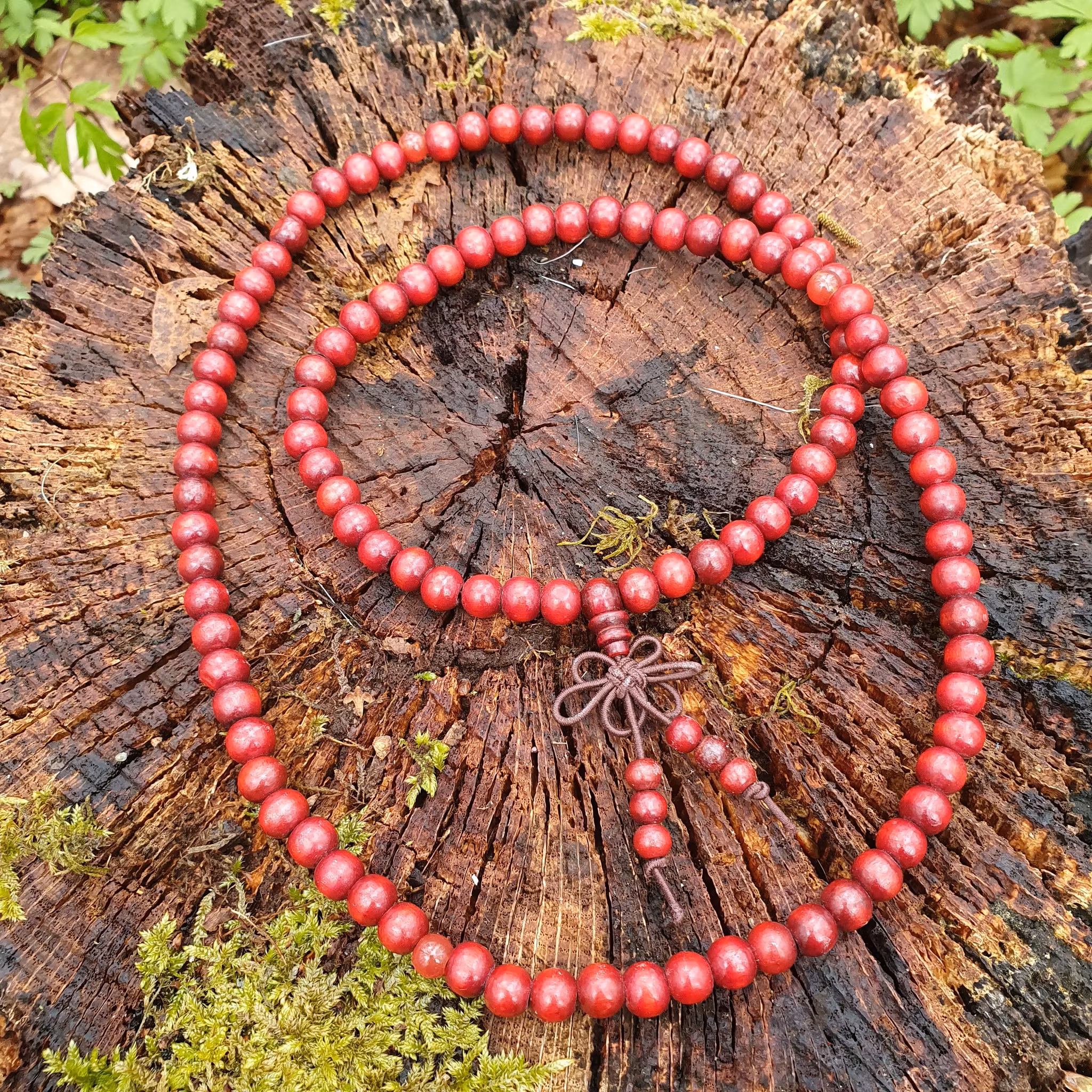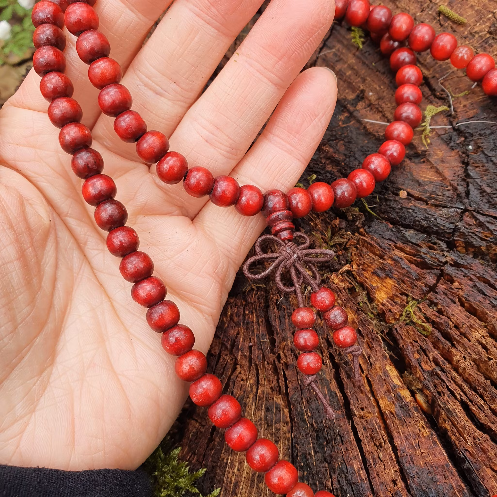 Hem › Smycken, väskor och Accessoarer › Halsband › Mala av träpärlor och karneol Mala av träpärlor och karneol I lager. 0 kr 89 kr Köp Mala av mörkröda träpärlor och karneol trätt på elastisk tråd, pärlorna är 8 mm. Flera populära produkter Halsband vaxad bomull Benvit 19 kr Läs mer Halsband vaxad bomull Grön/Guld 19 kr Läs mer The lovers Tarot Necklace 219 kr Läs mer Mala/armband av svarta träpärlor 69 kr Läs mer