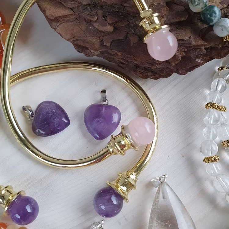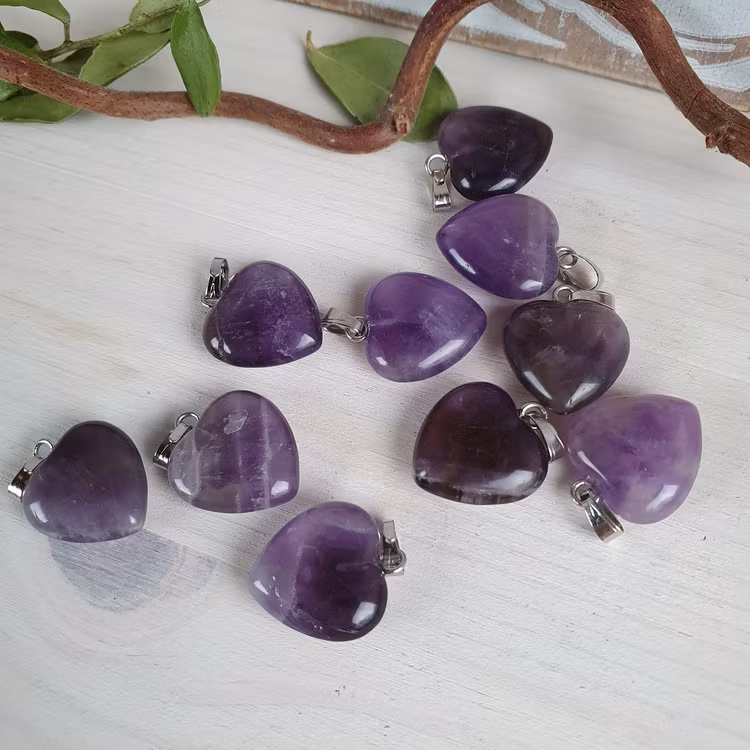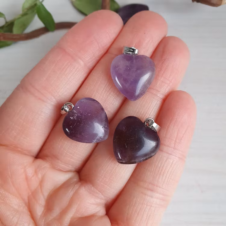 Litet hänge i form av ett hjärta av Ametist och silverfärgat hänge.