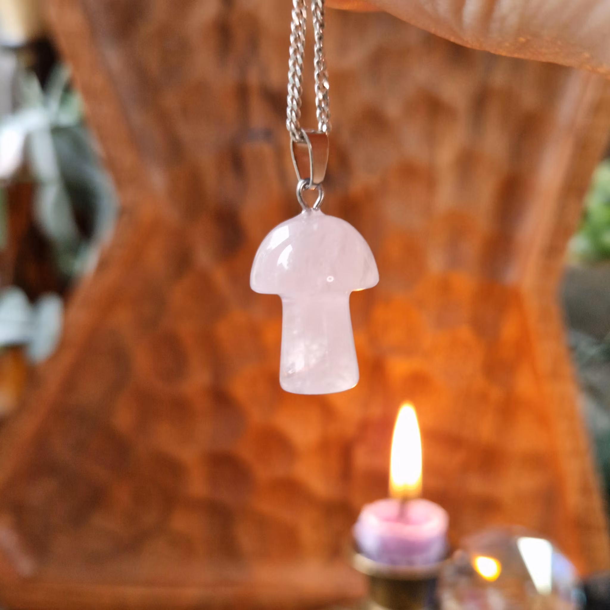 Litet hänge i form av en svamp och hänge i metall hänge. Observera att hänget inte alltid sitter rakt över hatten, vilket syns på fotot. Halsband i vaxad bomullstråd finns att köpa separat. Kedjan på bilden ingår ej.