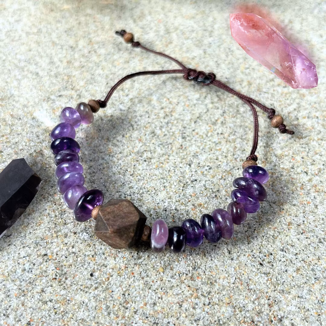 Armband med Ametist och träpärlor i makrame, Onesize XS-M