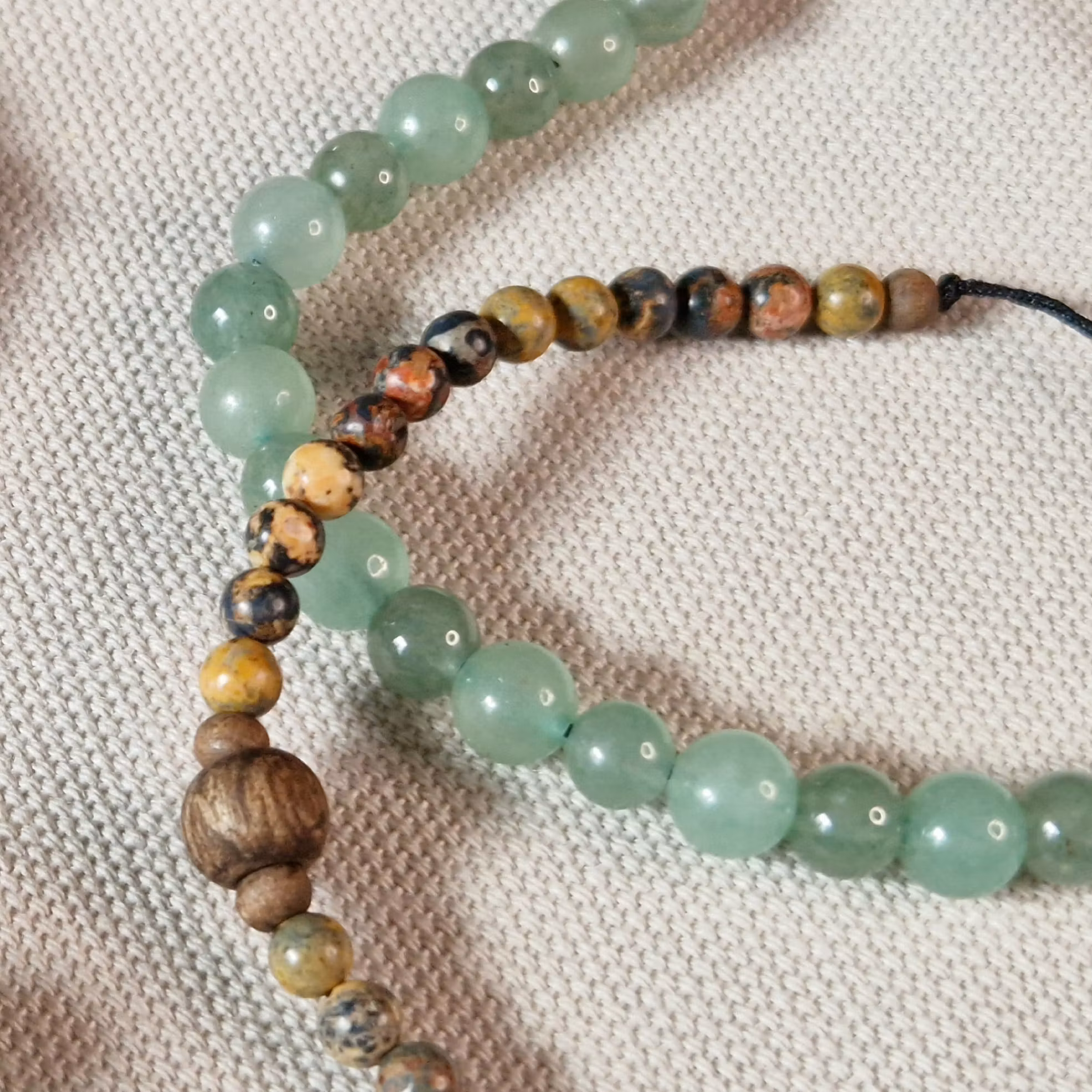 Armband med Leopard jaspis och träpärlor i makrame, Onesize XS-L