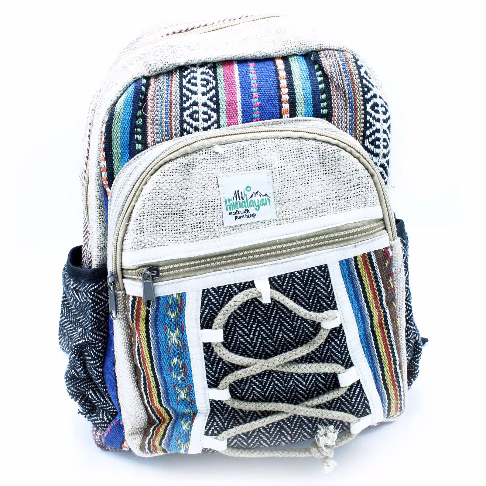 Ryggsäck i fin kvalitet utav hampa och bomull gjord i Nepal. Väskan passar mindre utflykter vart du än ska. Väska har vadderat ryggparti, 2 st fack för flaskor och 3 fack med dragkedja. Axelremmarna är reglerbara och vadderade för komfort. Alla väskor är unika, kombinationen av tyg och mönster varierar, så den du får är inte identisk med bilden, men alla är lika fina och i samma bra kvalitet. Perfekt för sommarens aktiva äventyr.