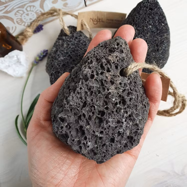 Gnid Lavastenen där du har torr hud, den kommer exfoliera och förnya din hud genom att ta bort det torra och döda hudceller. Med ett praktiskt snöre så den enkelt kan hängas upp på en krok.
