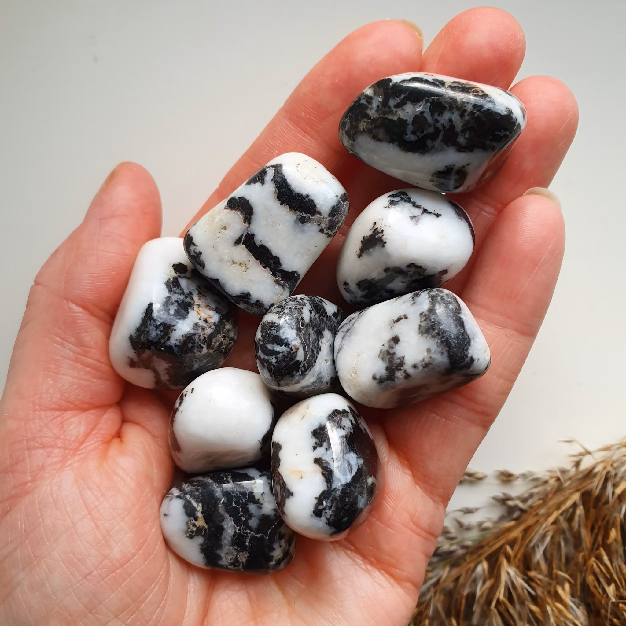 Trumlade bitar av Zebra Jaspis. Naturliga ojämnheter förekommer. Vi väljer en fin sten åt dig.