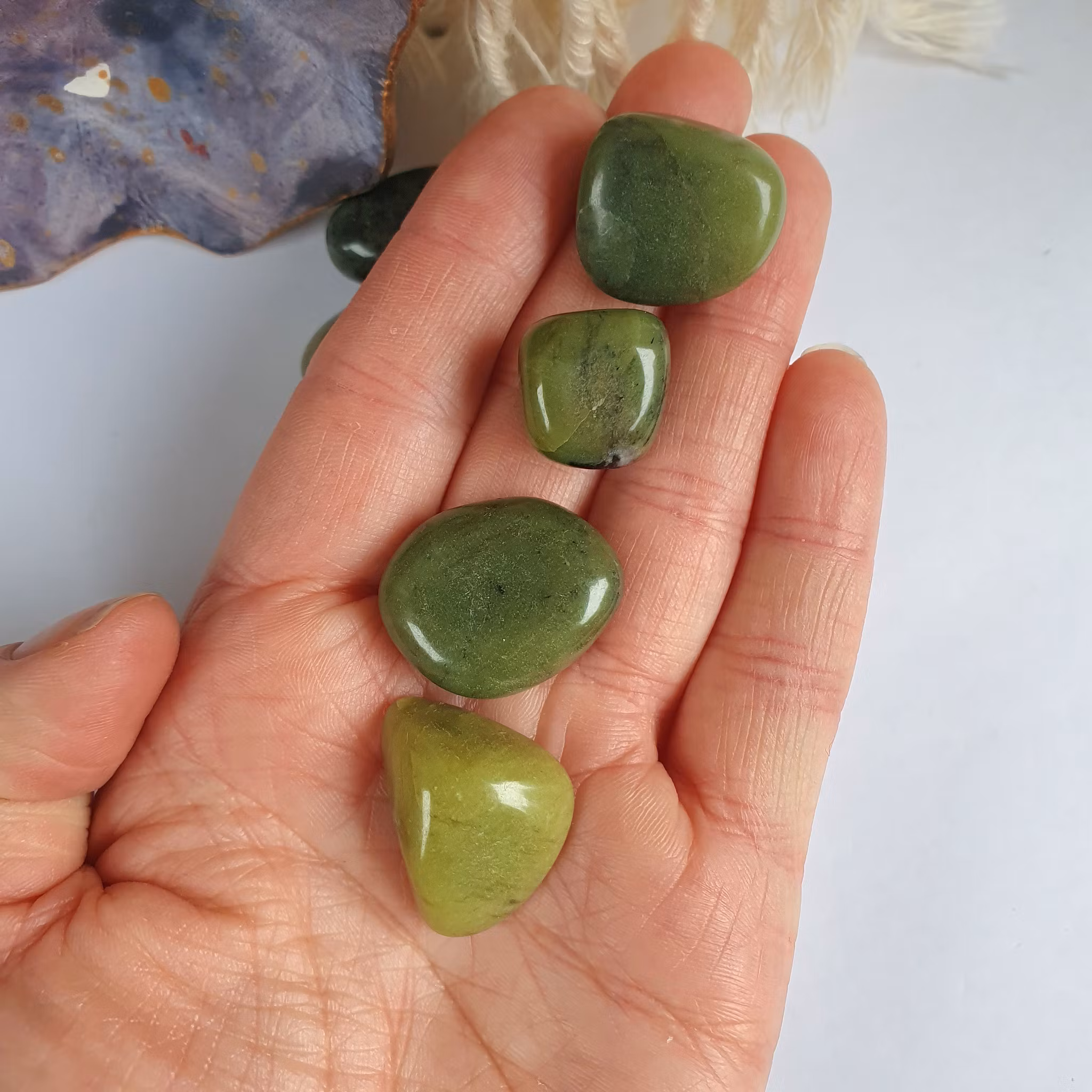 Fin trumlad bit av Serpentin. Oftast så används tradenamet "Nefrite Jade" för denna sten men det är missvisande, därför väljer jag att använda dess äkta identitet. Vi väljer en fin sten åt dig.