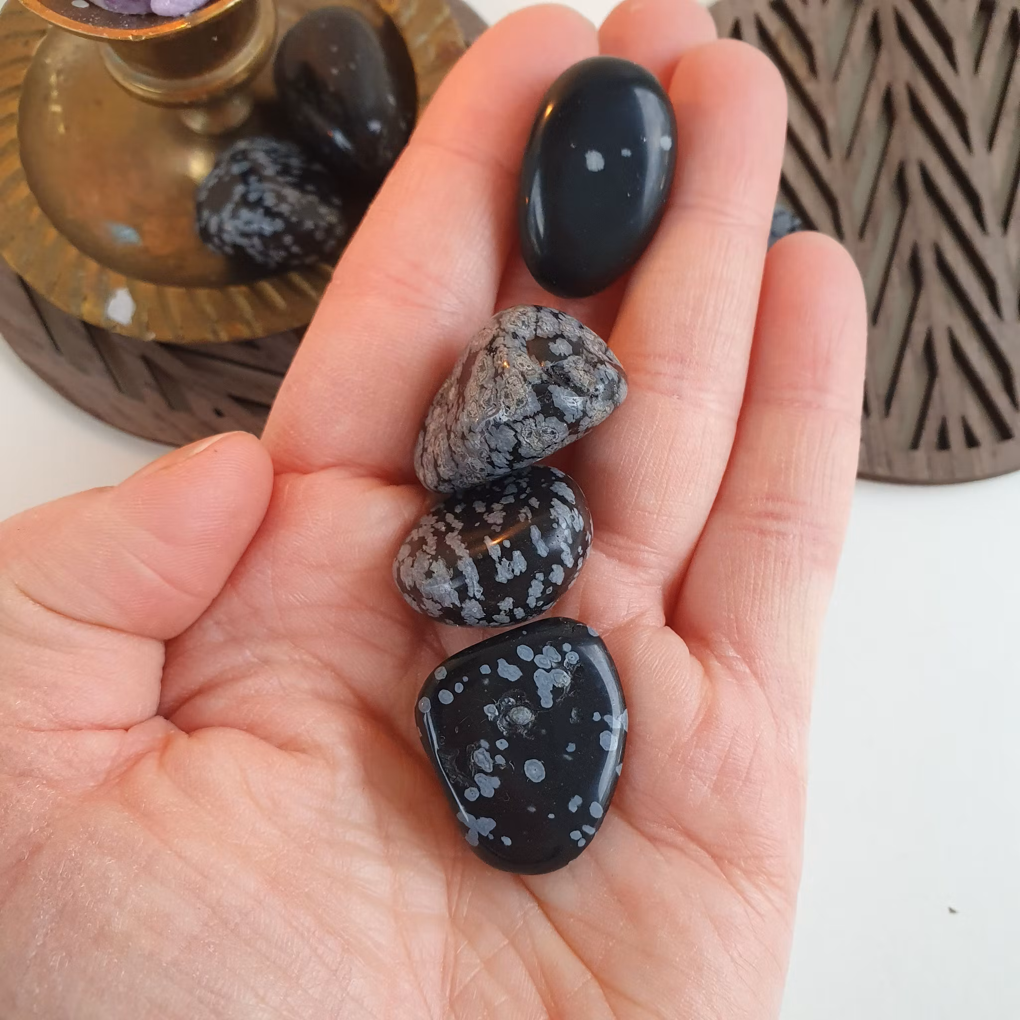 Härlig trumlad bit av Snöflingeobsidian. Vi väljer en fin sten åt dig.