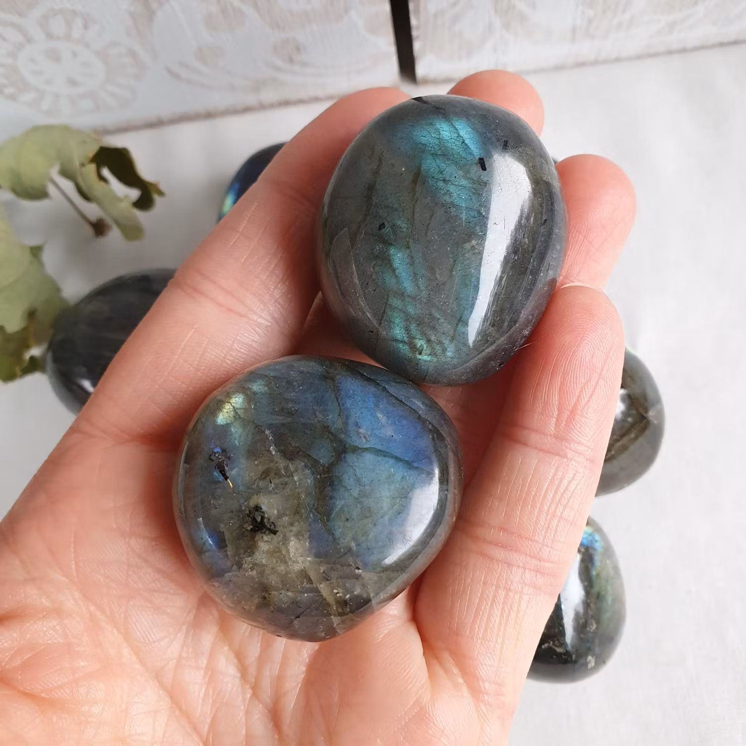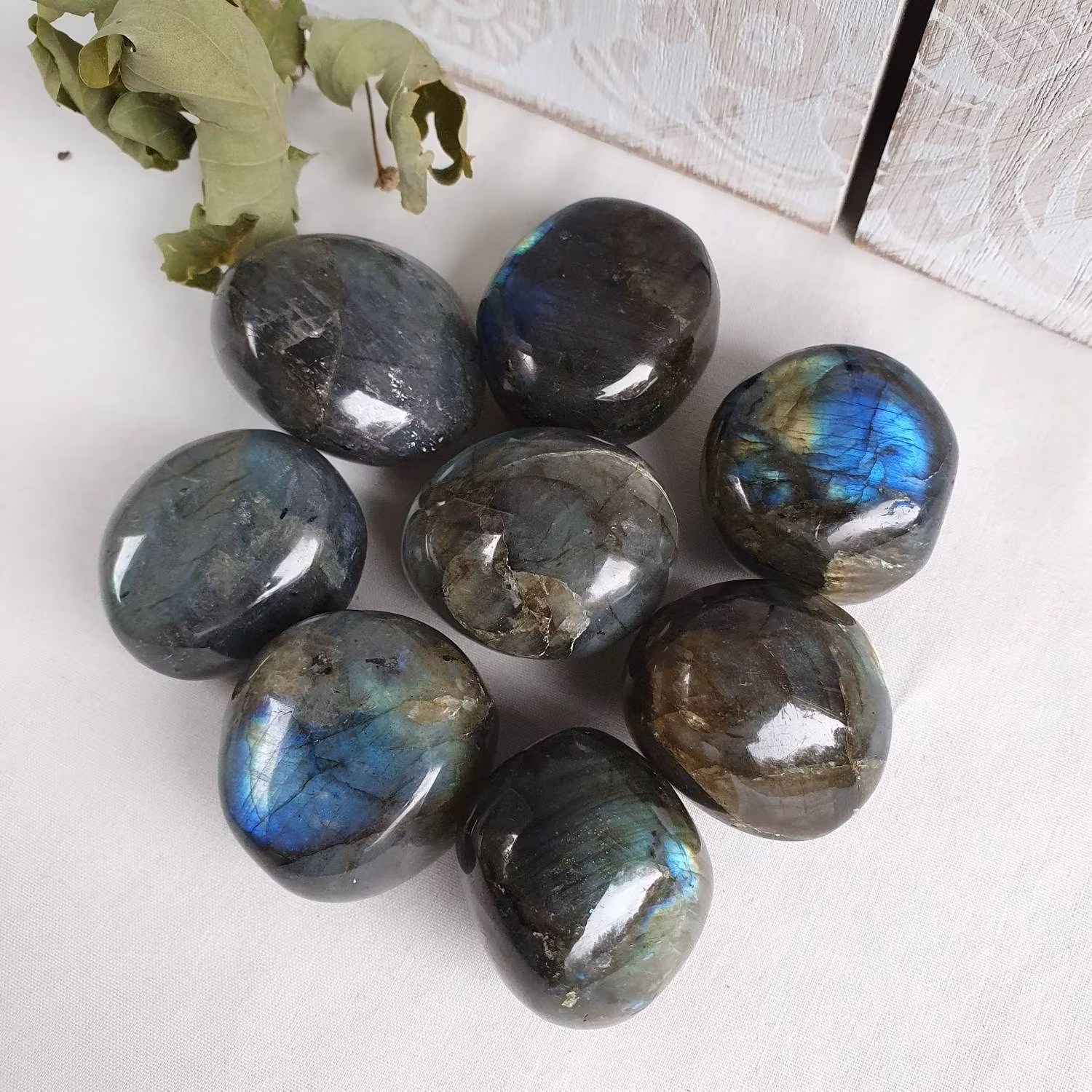 Fin stor trumlad, lite runda bitar (cuddlestone) av Labradorit i AA-kvalitet