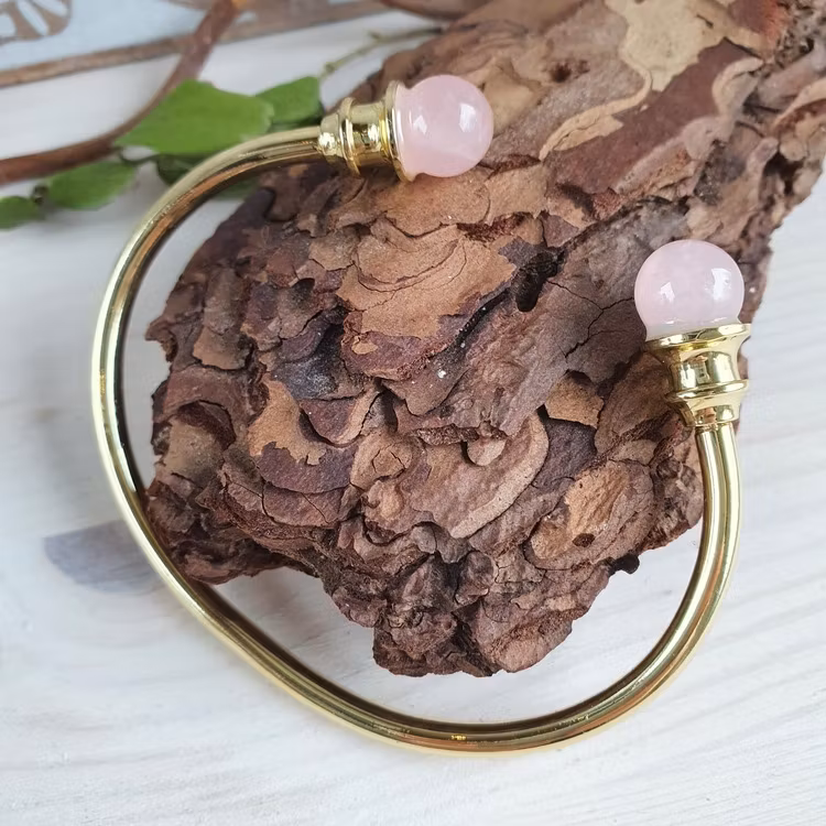 Vackert mässingsfärgat armband med kula utav Rosenkvarts på 1 cm i diameter.