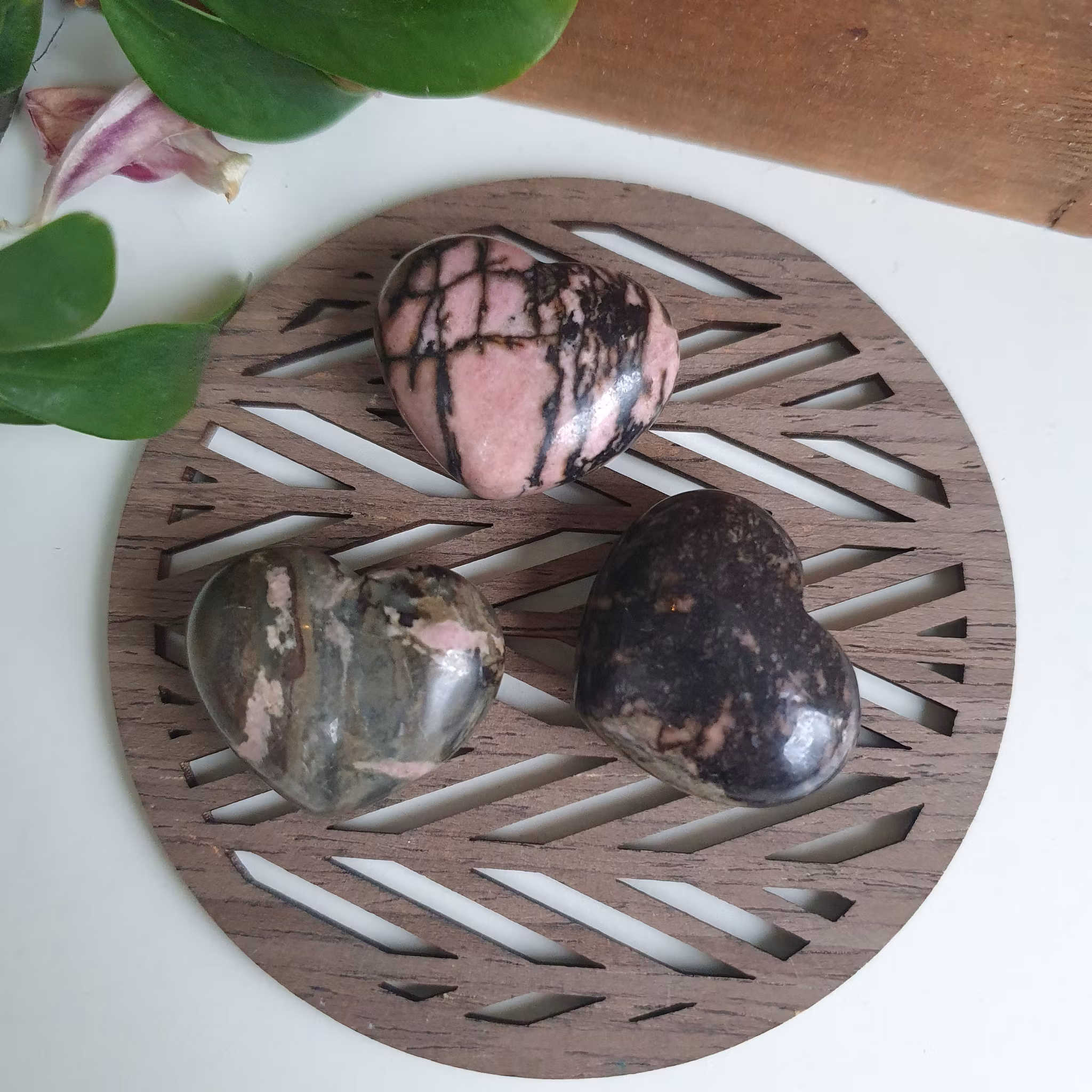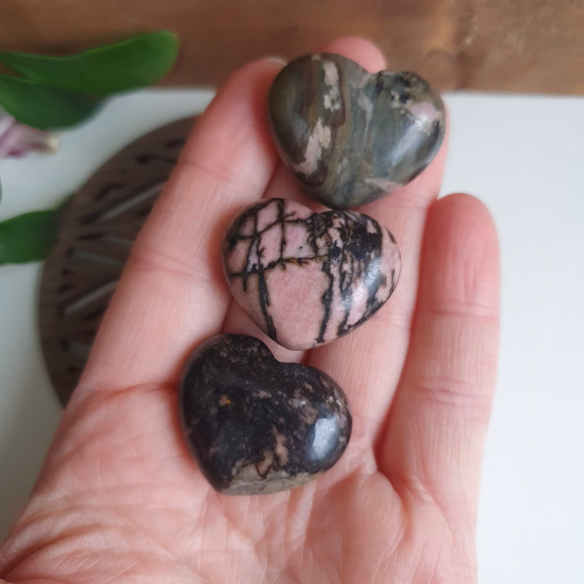 Fint bulligt hjärta av Rodonit. Vi väljer ett fint hjärta åt dig.
