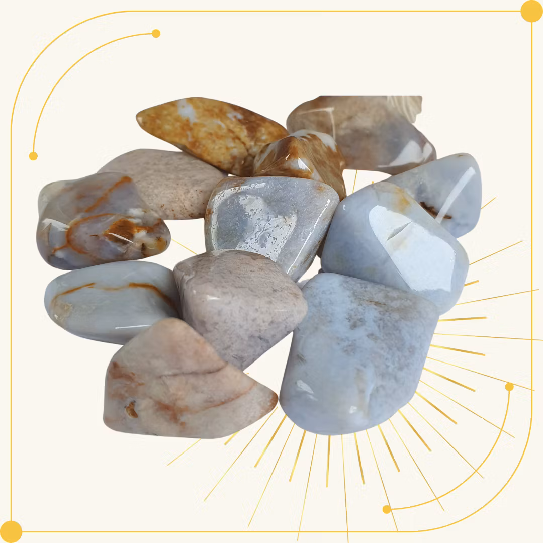 Trumlad blå kalcedon 5-9 g XS. Vi väljer