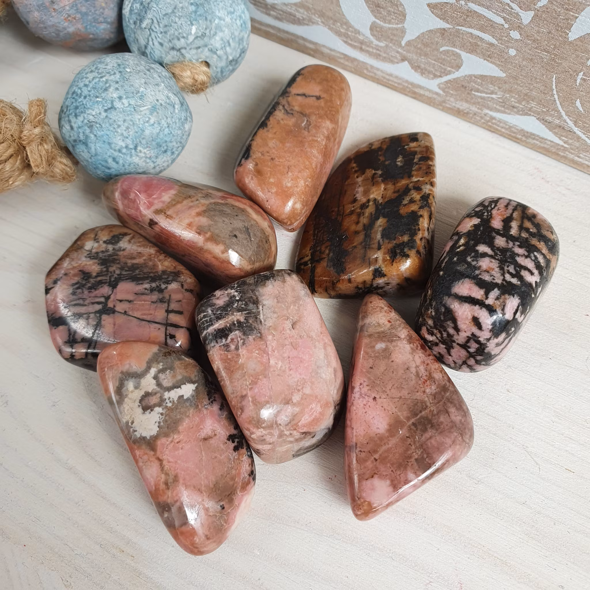 Trumlade bitar av Rodonit, vi väljer en fin sten åt dig.